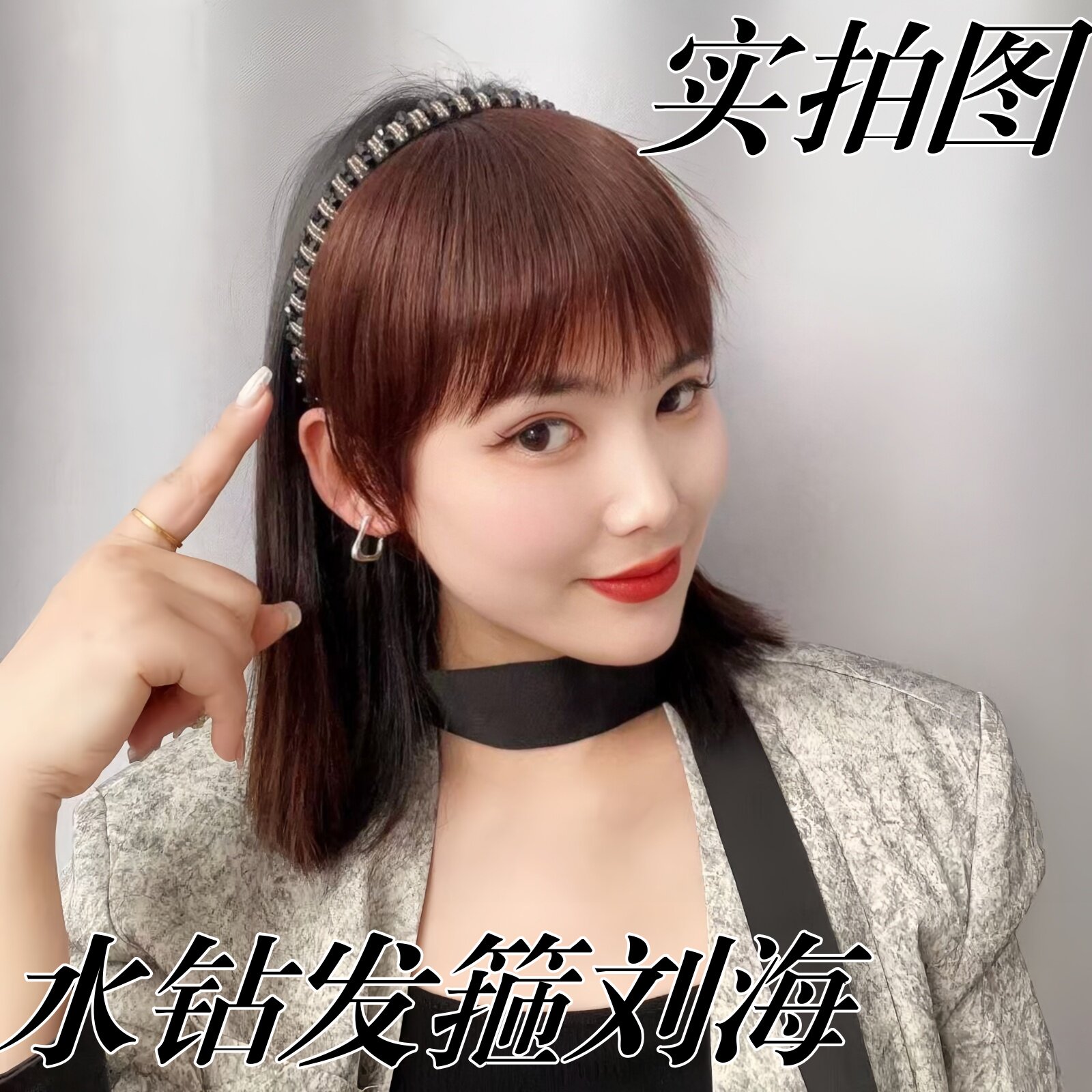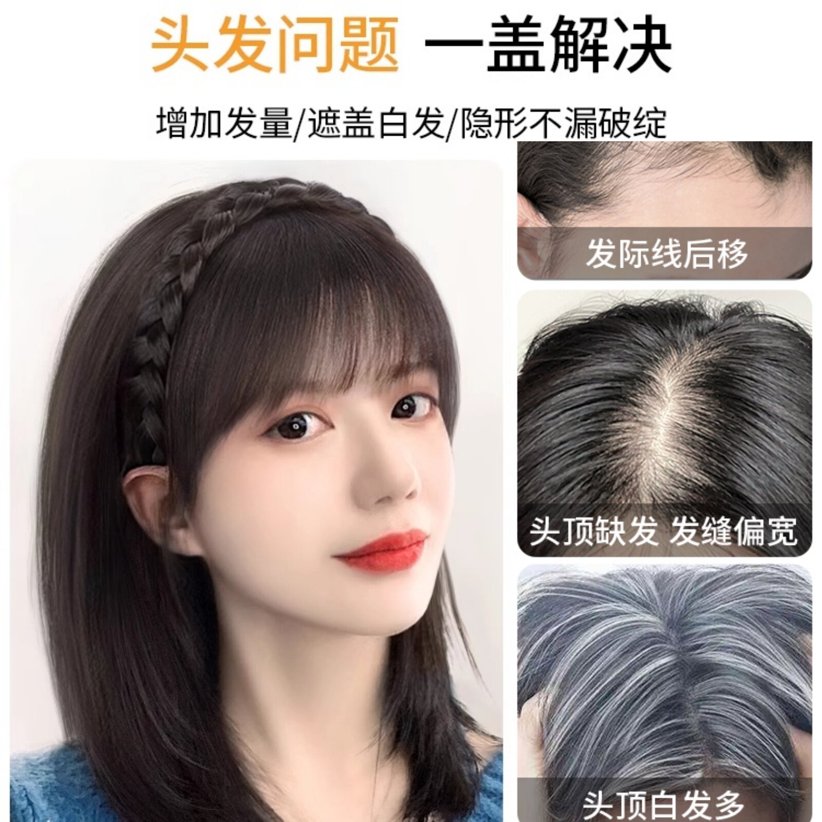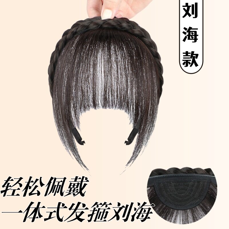 假刘海女前额发箍刘海一体真发减龄空气刘海头顶假发片女遮白发