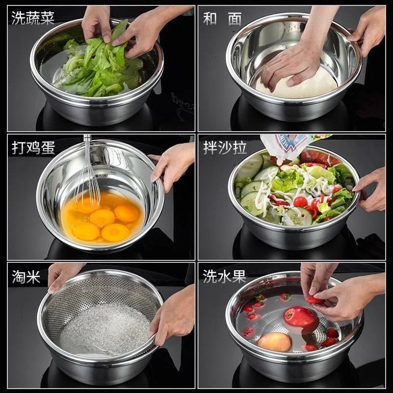 食品级不锈钢盆洗菜和面加厚打蛋家用厨房凉拌沙拉料理盆直边盆碗