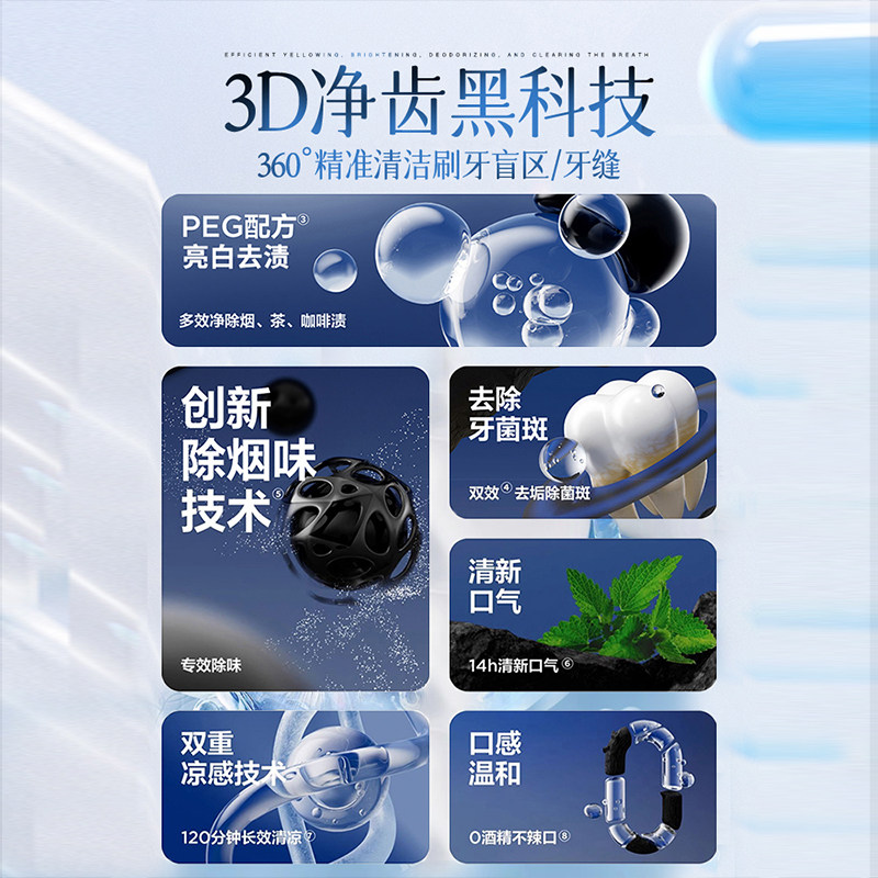 竹炭洁齿牙膏美白强效去烟渍茶渍清新口气除臭活性炭薄荷防蛀牙膏