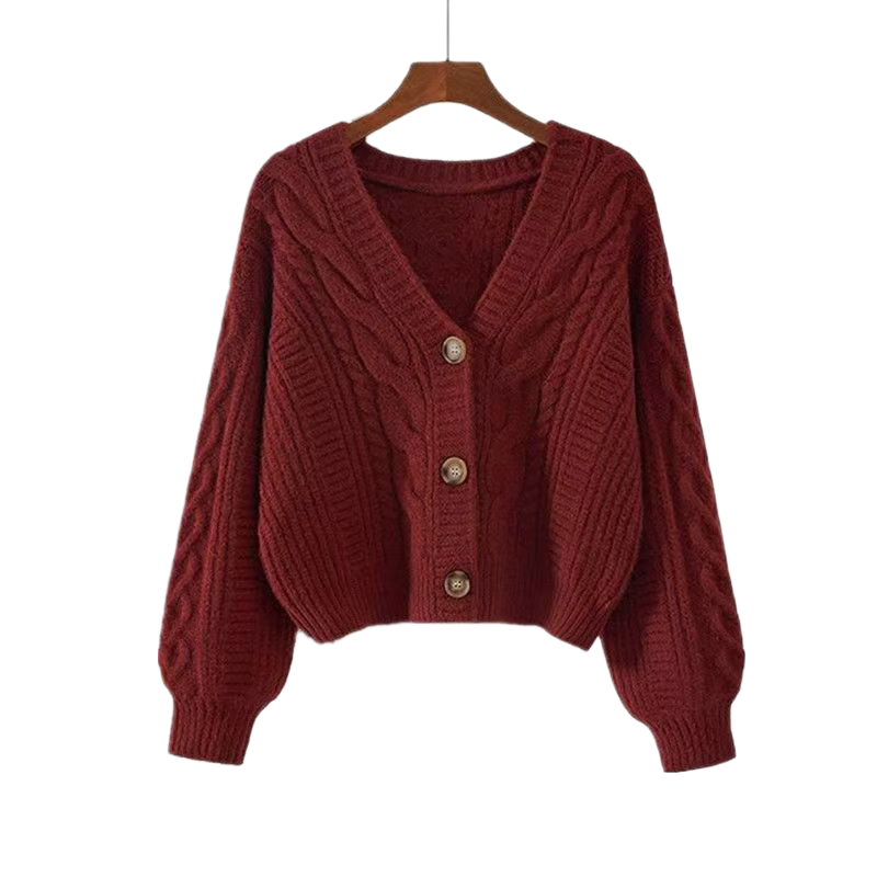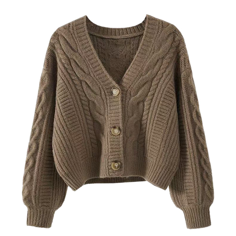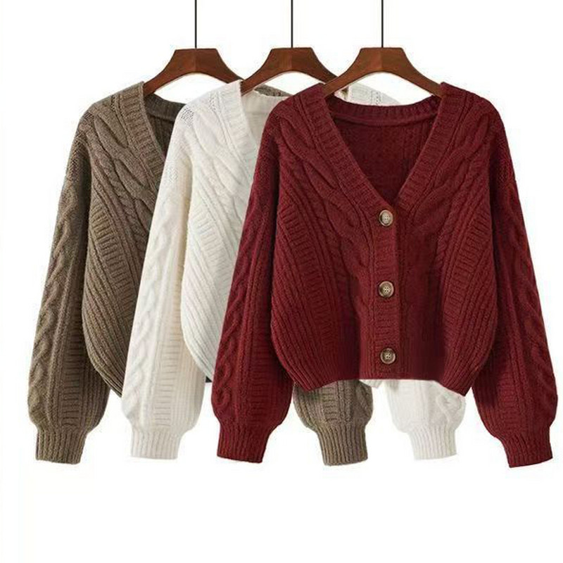 LE真维斯女装宽松V领毛衣外套 2025冬季新品 慵懒风显瘦女款开衫
