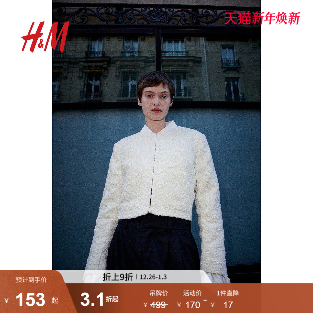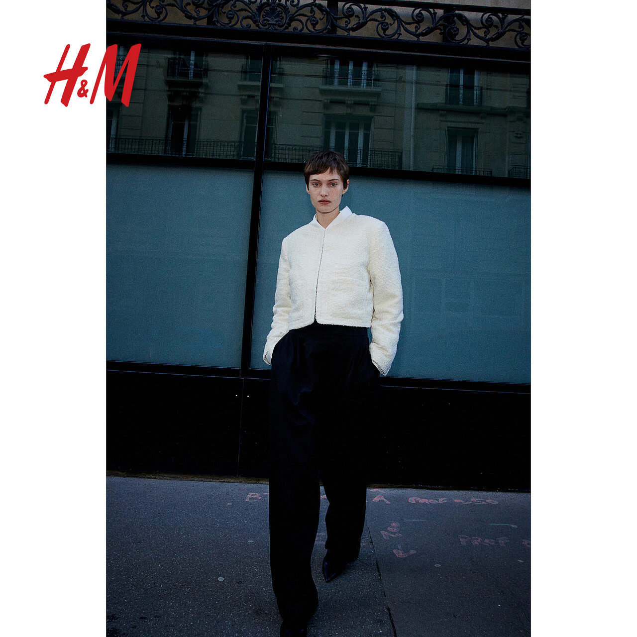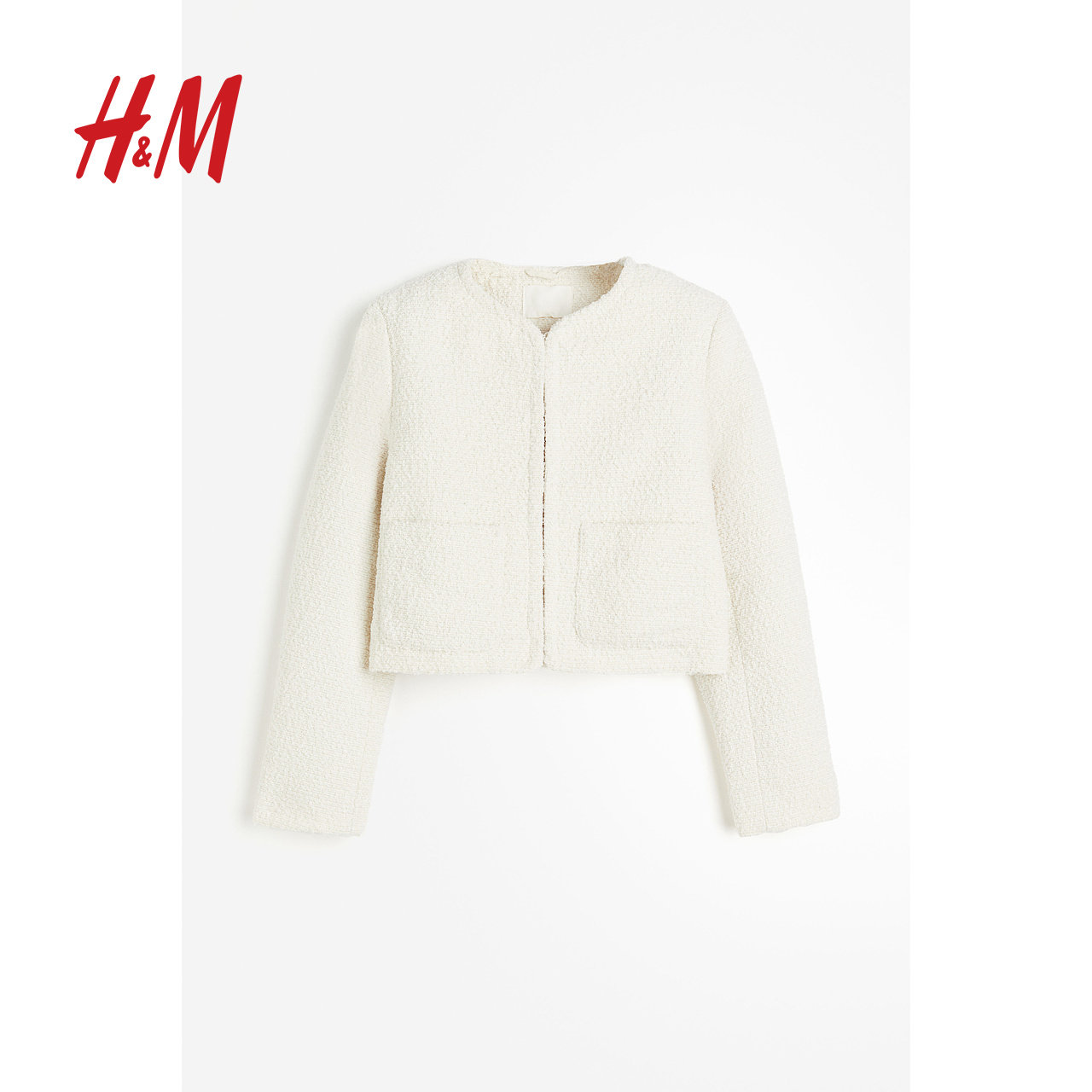 HM女装短外套冬季圈绒修身千金小香风外套长袖上衣1217524