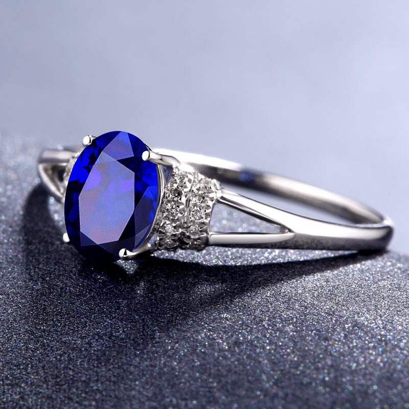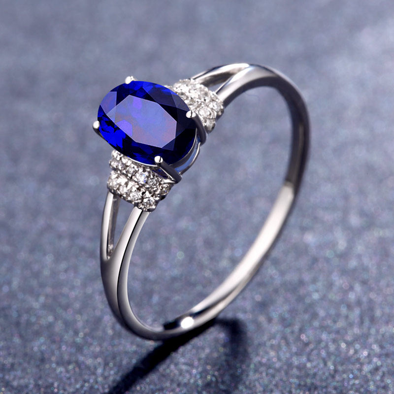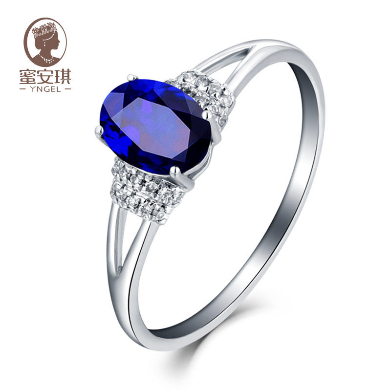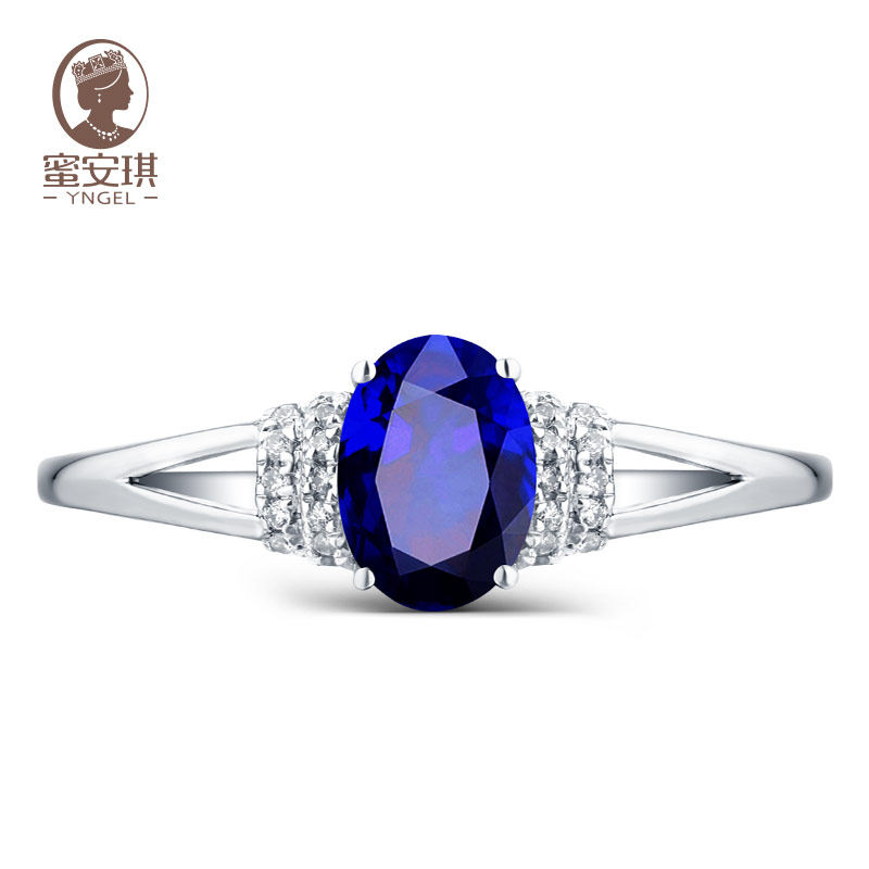 蜜安琪 0.62~2.22克拉天然蓝宝石戒指女 18K金镶嵌钻石戒指女款