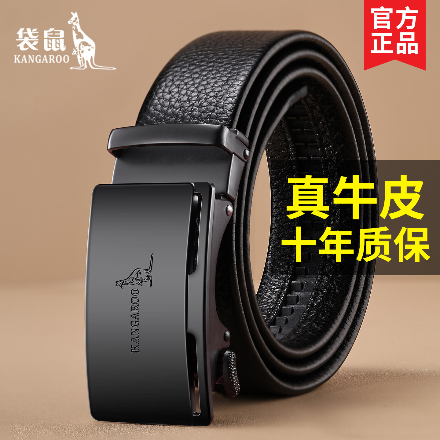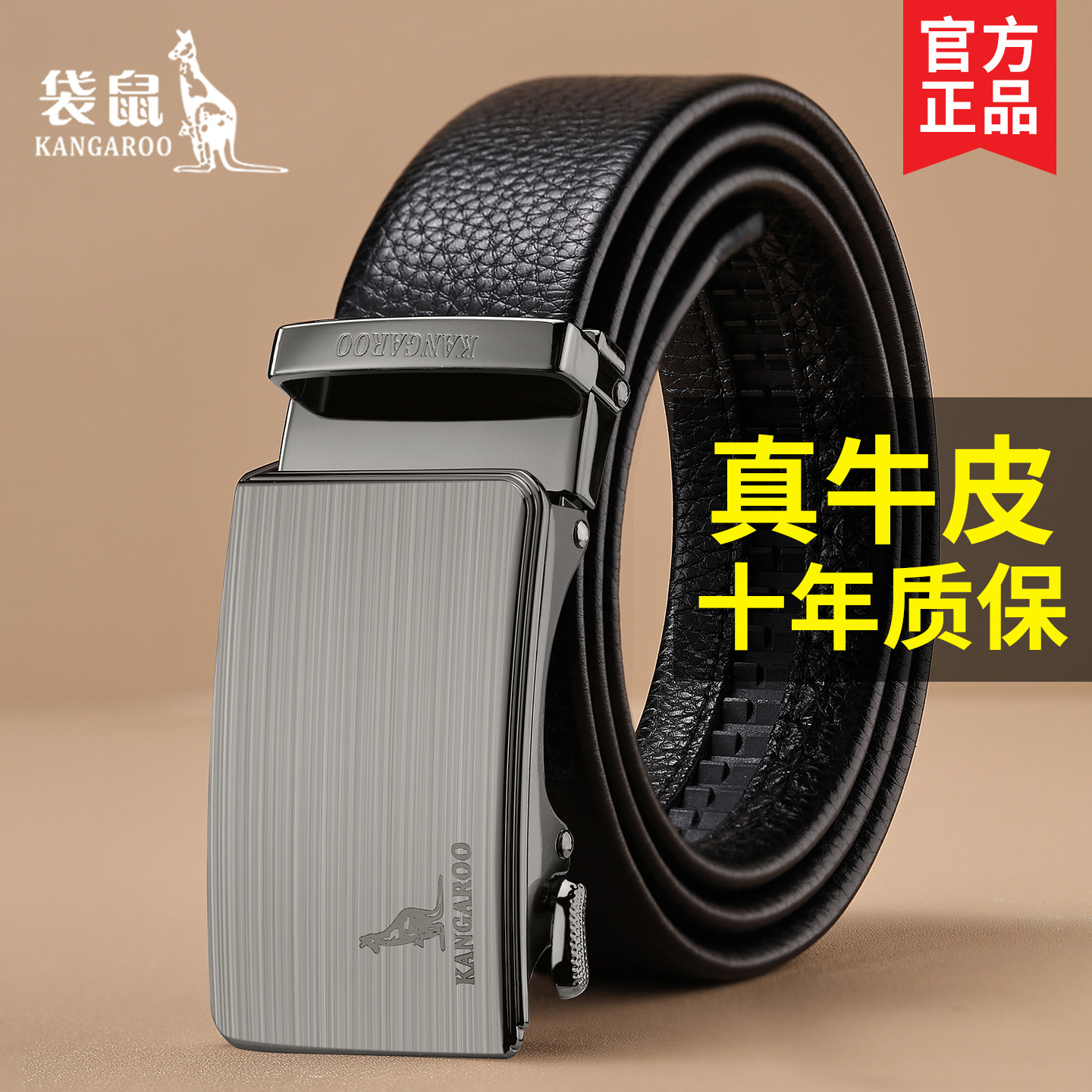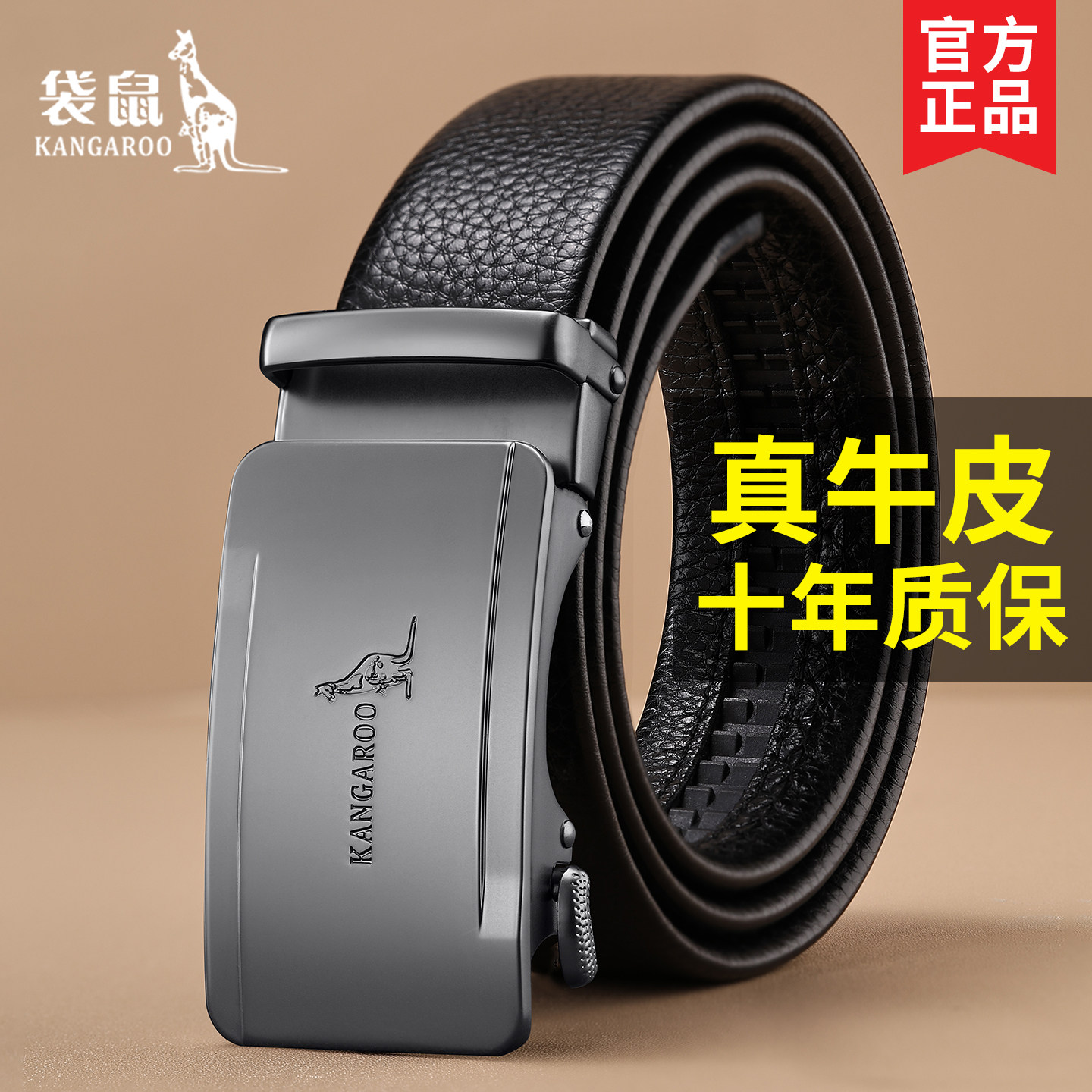 袋鼠皮带男款真皮正品自动扣男士头层牛皮腰带年轻人休闲商务裤带
