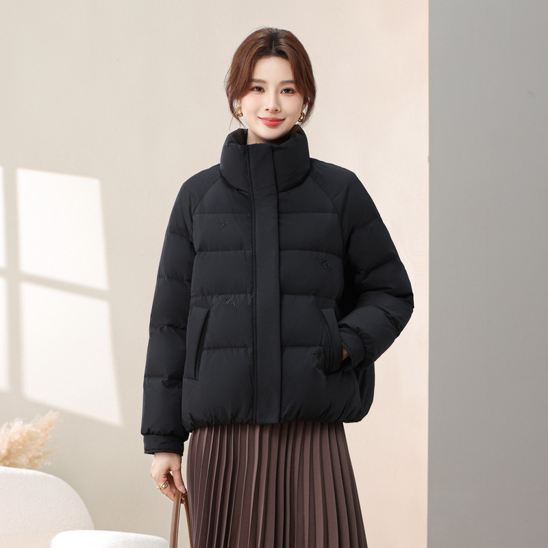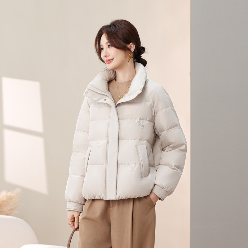 【鞠婧祎同款】鸭鸭2025年冬新款百搭短款女士纯色立领羽绒服外套