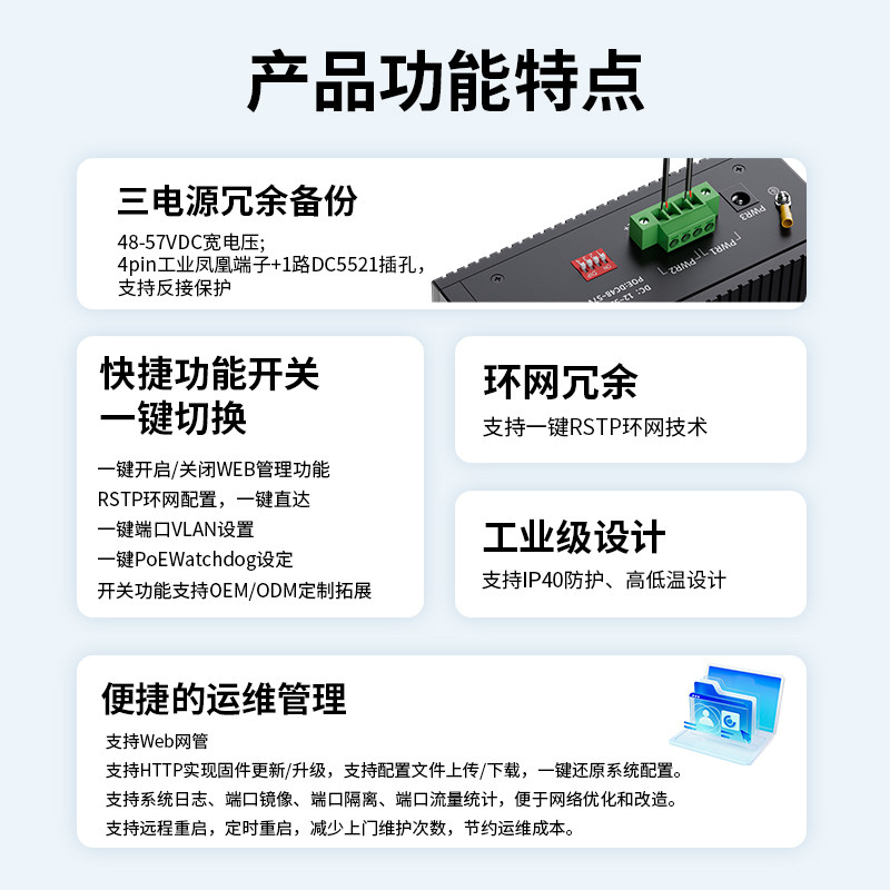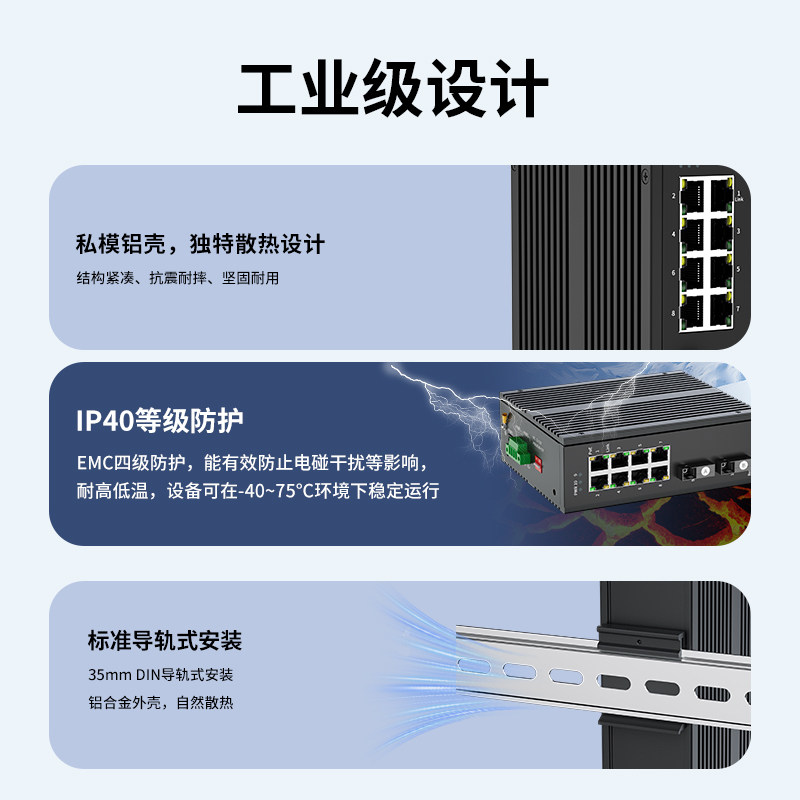 光必达工业级网管型千兆2光4电8电24口POE供电交换机WEB管理三层万兆4光48电汇聚核心交换机VLAN环网
