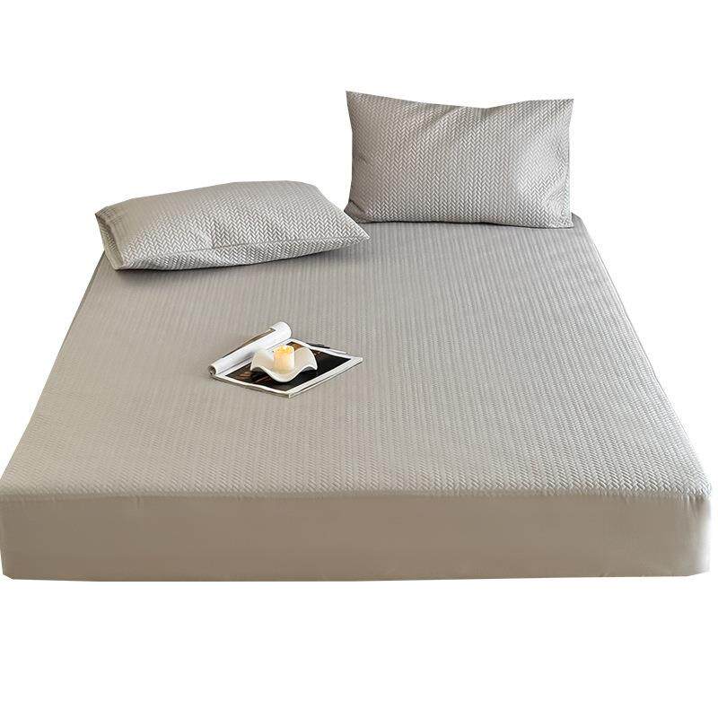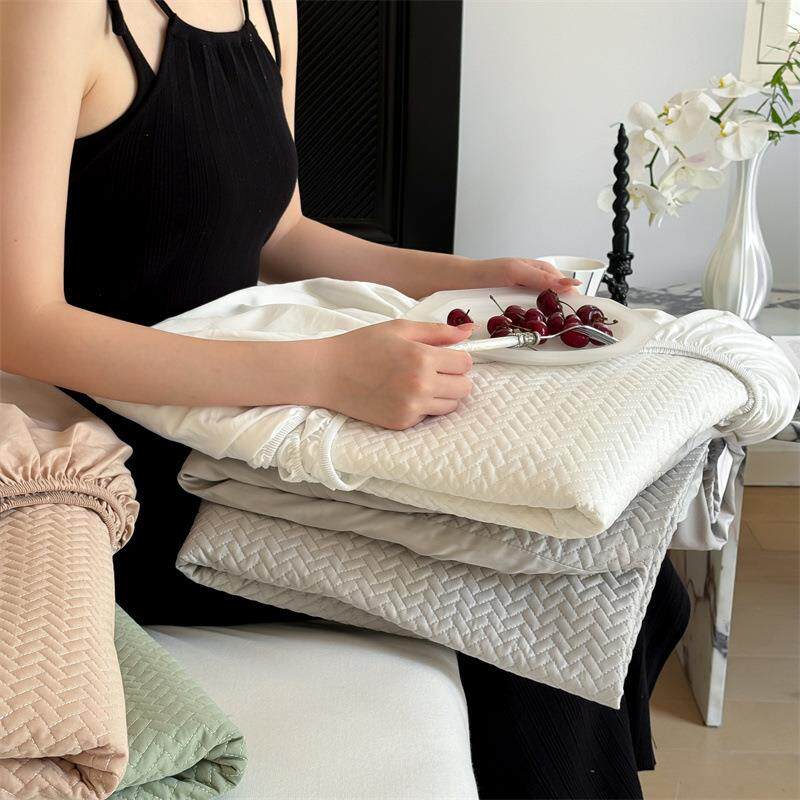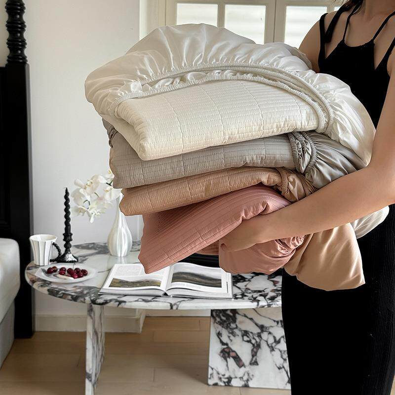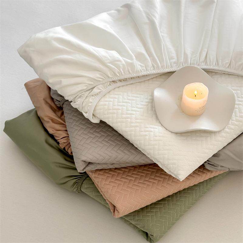韩风直条密道全棉砂洗绗缝夹棉床笠纯色床垫保护套席梦思床罩