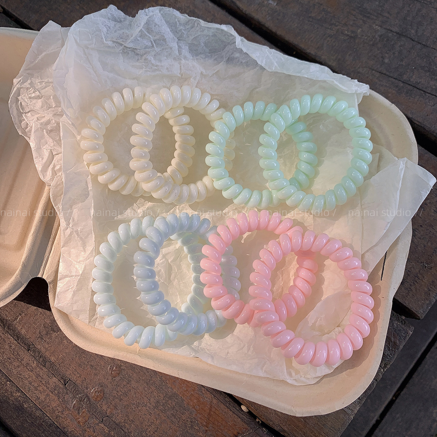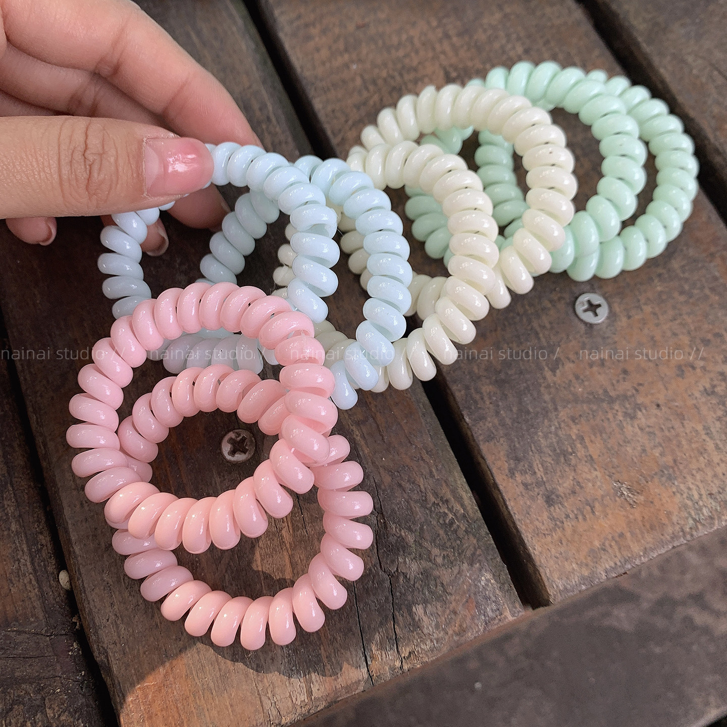马卡龙色电话线发圈~高弹力扎头发马尾橡皮筋发绳无痕甜美头绳女