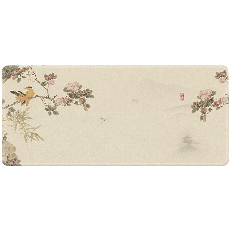 国潮工笔花鸟超大号鼠标垫中国风复古宫廷办公桌垫水墨电竞鼠定制