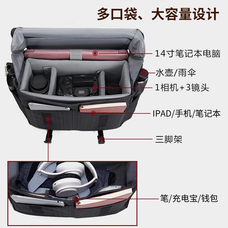 Cwatcun香港卡登单肩相机包男单反背包户外大容量防水微单适用索尼佳能r50 r10尼康富士便捷专业斜挎摄影包女