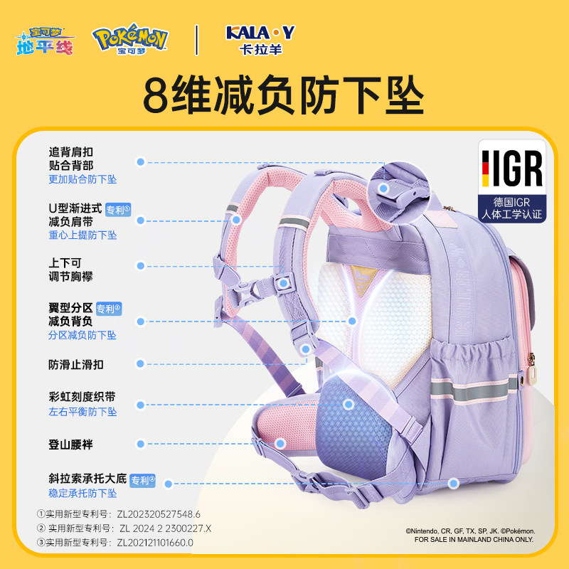 【宝可梦联名】卡拉羊书包云朵ProMax1-3-6年级减负护脊超轻双肩包男女孩大容量高颜值书包