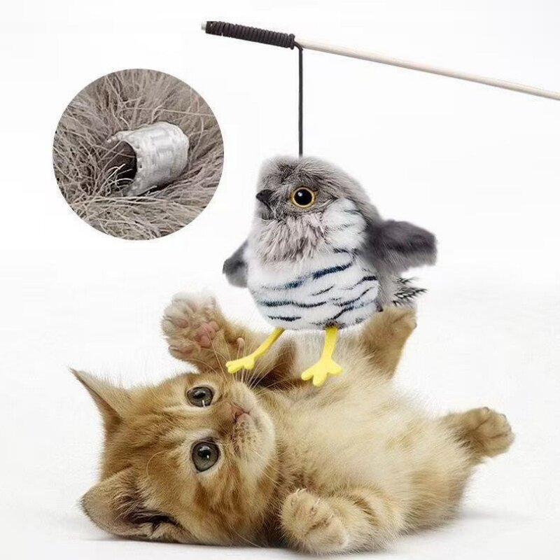 宠有扑腾小猫咪自嗨解闷玩具仿真小鸟自动逗猫棒布谷鸟发声猫薄荷