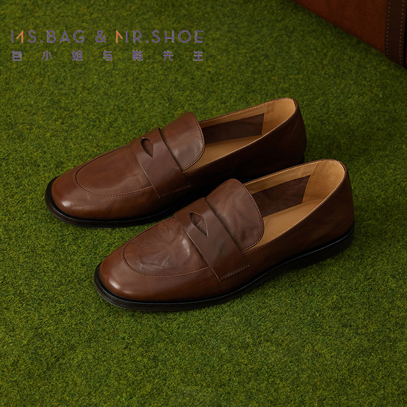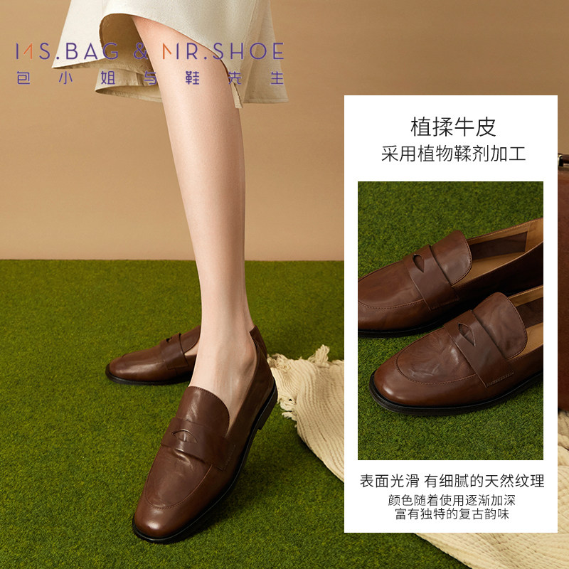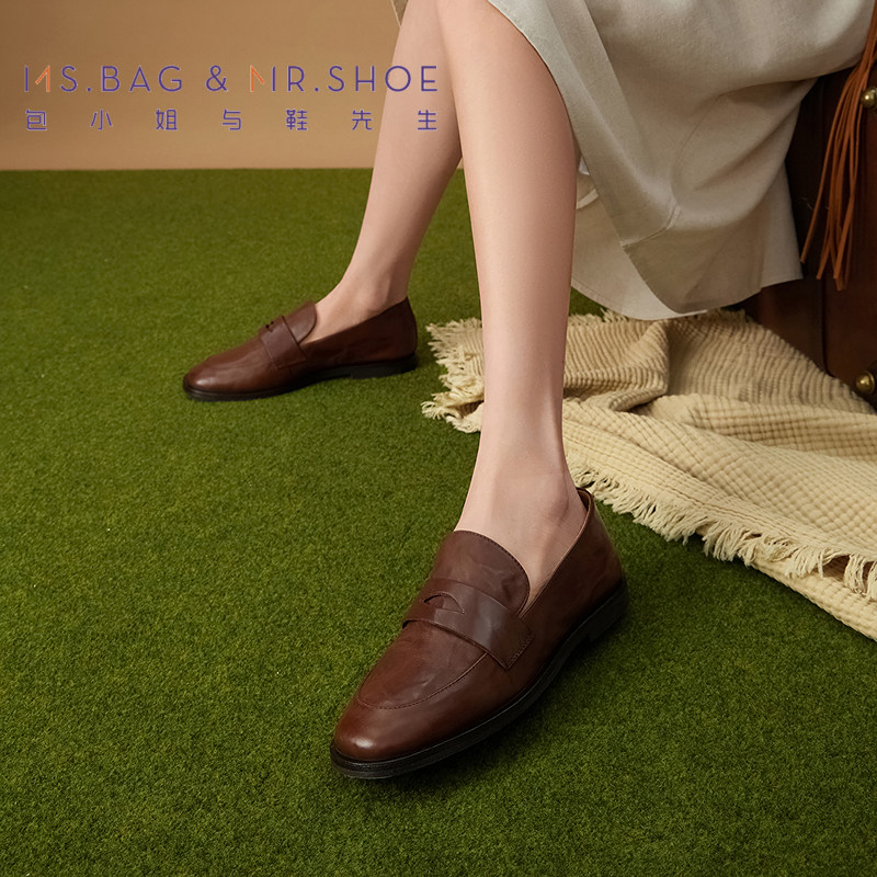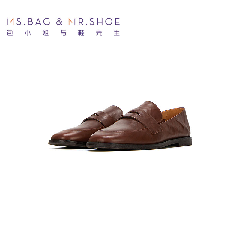 包小姐与鞋先生春季水洗做旧牛皮深口乐福单鞋女251077