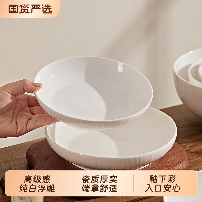 纯白浮雕陶瓷盘子家用新款餐盘菜盘高级感深盘大盘子釉下彩碗盘碟