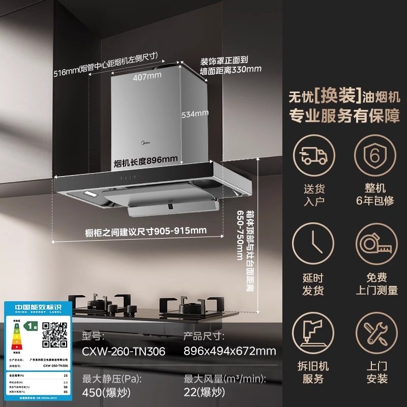 美的官方抽油烟机T36PRO家用厨房欧式顶吸智控清洁大吸力烟灶套装