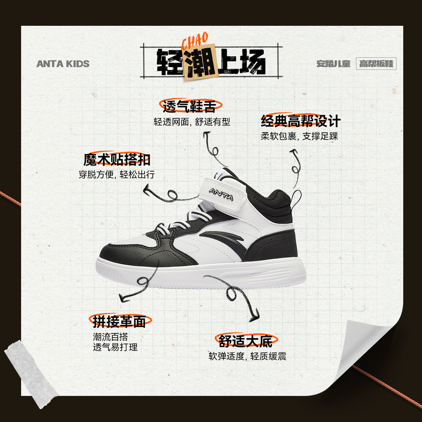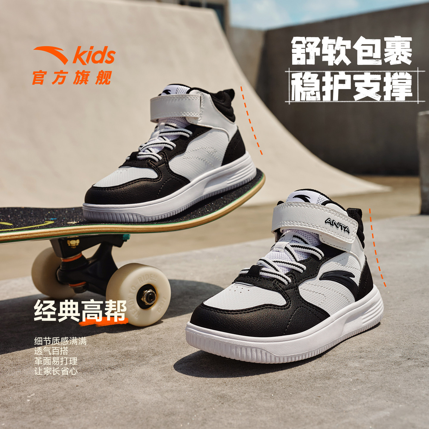 安踏儿童高帮板鞋男小童鞋2025冬季新款防风保暖高帮板鞋女童鞋子