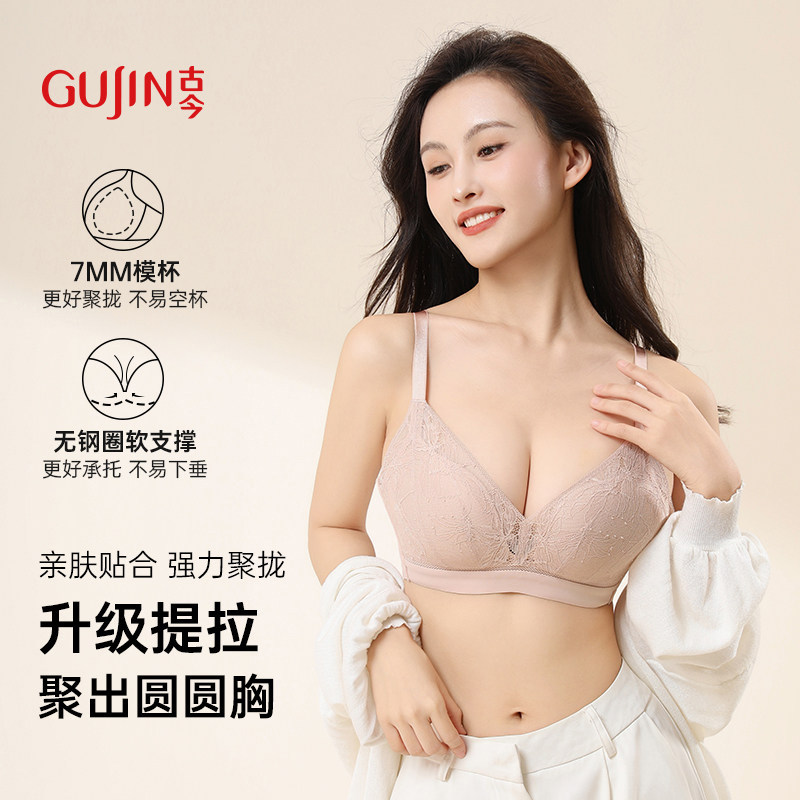 古今小胸法式蕾丝聚拢无钢圈不空杯15mm内衣文胸罩