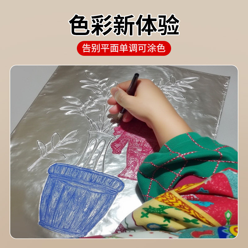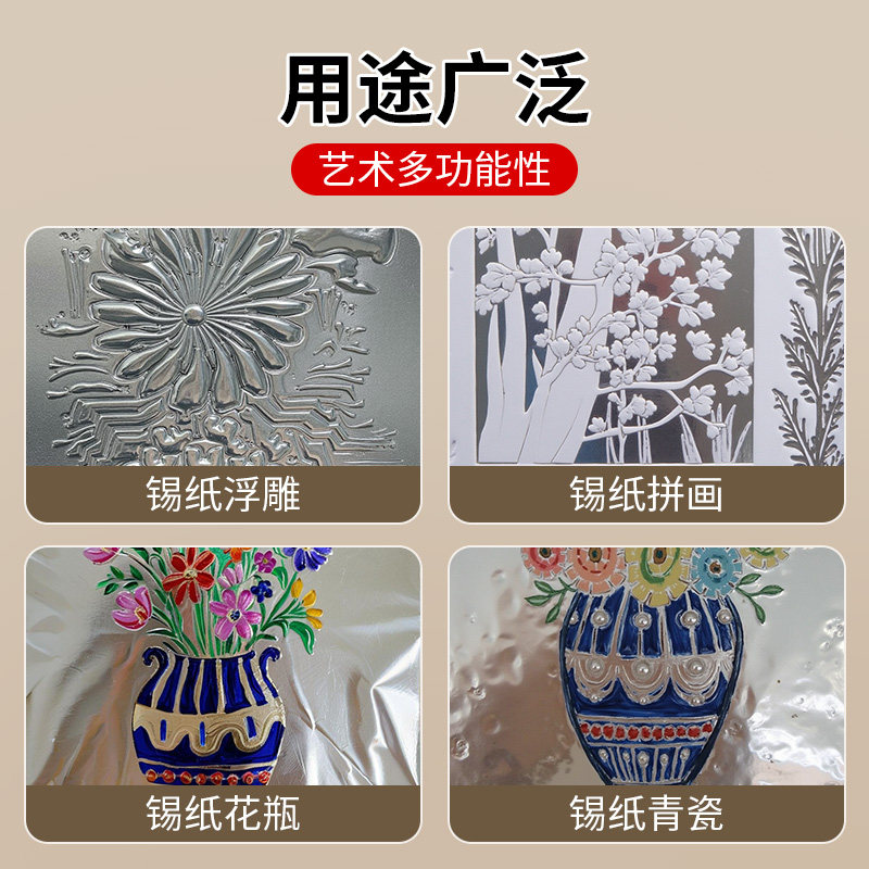 学生美术课用加厚款70微米绘画锡纸DIY手工创意浮雕上色银色铝箔纸少数民族头饰服饰艺术立体挂件雕刻锡箔片