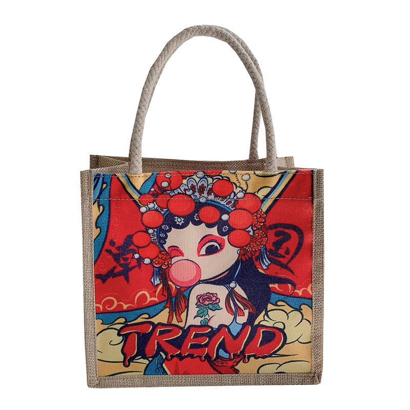 中国风简约麻布包女手提包潮流卡通文艺手拎零食袋小饭盒便当包