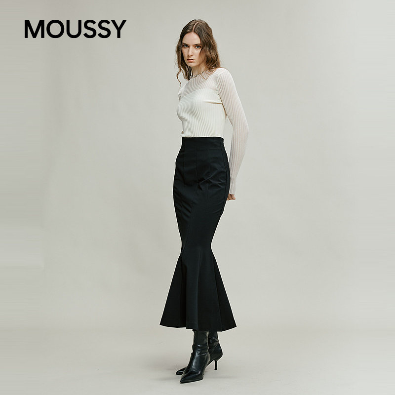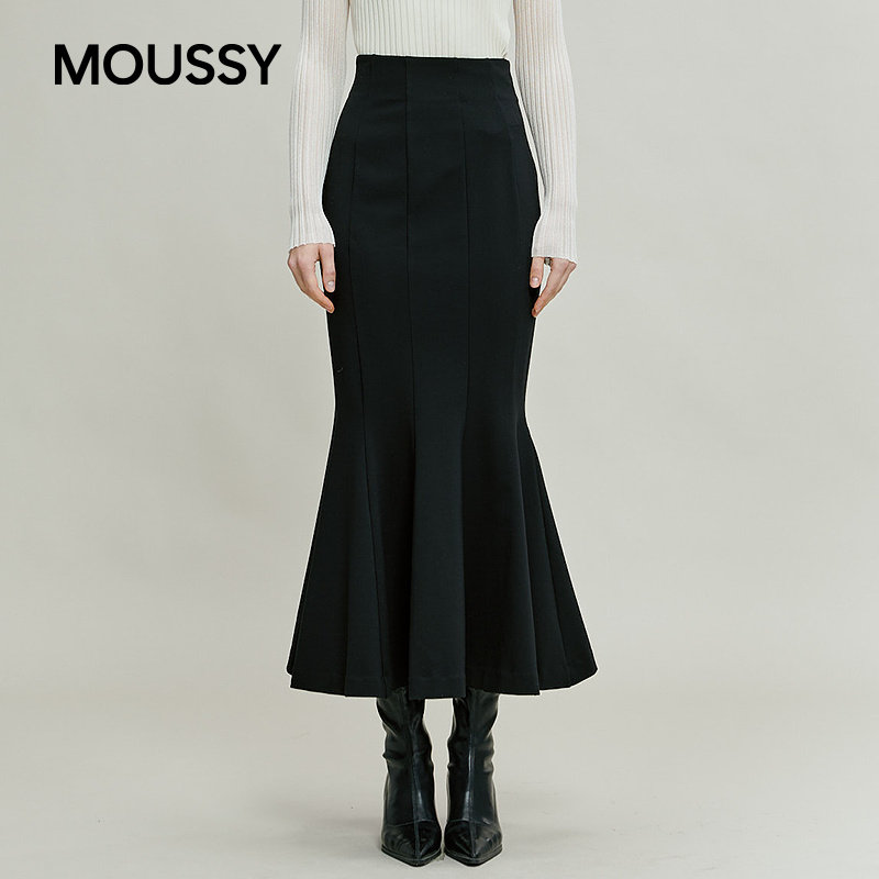 MOUSSY 2025冬季新品优雅知性风纯色垂感鱼尾半身裙028IAB81-1002