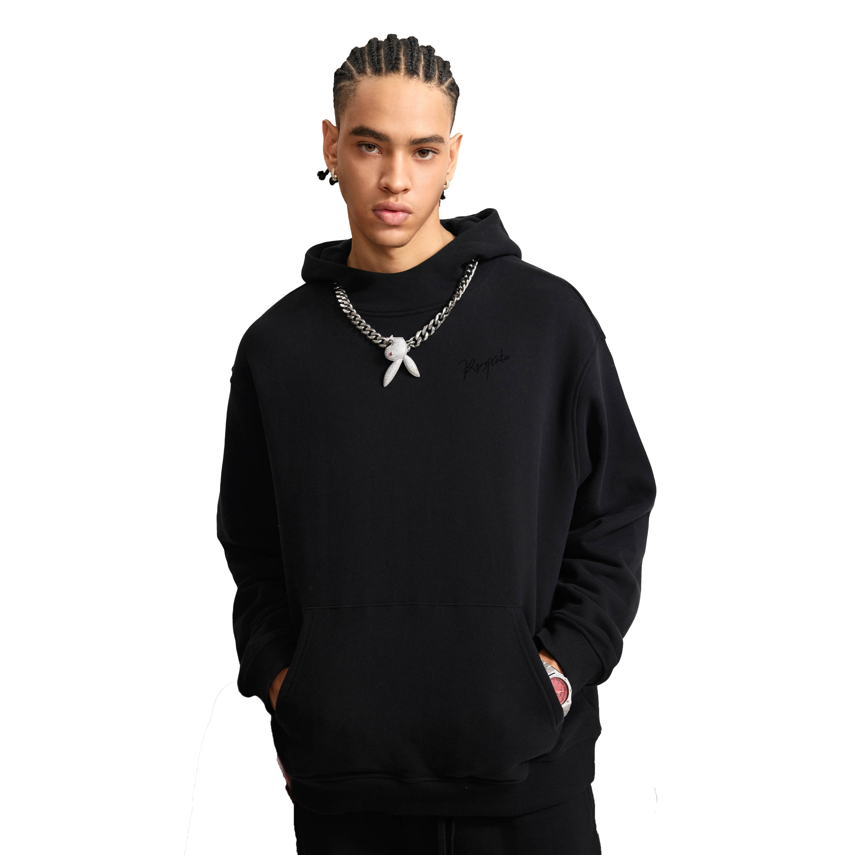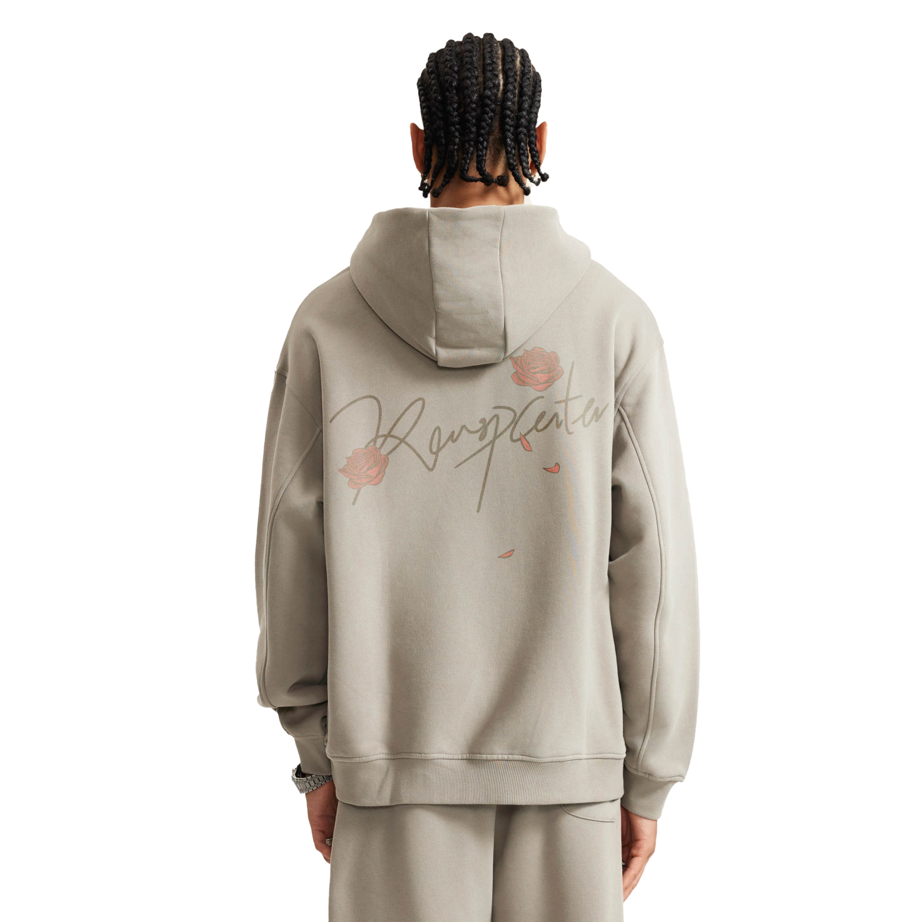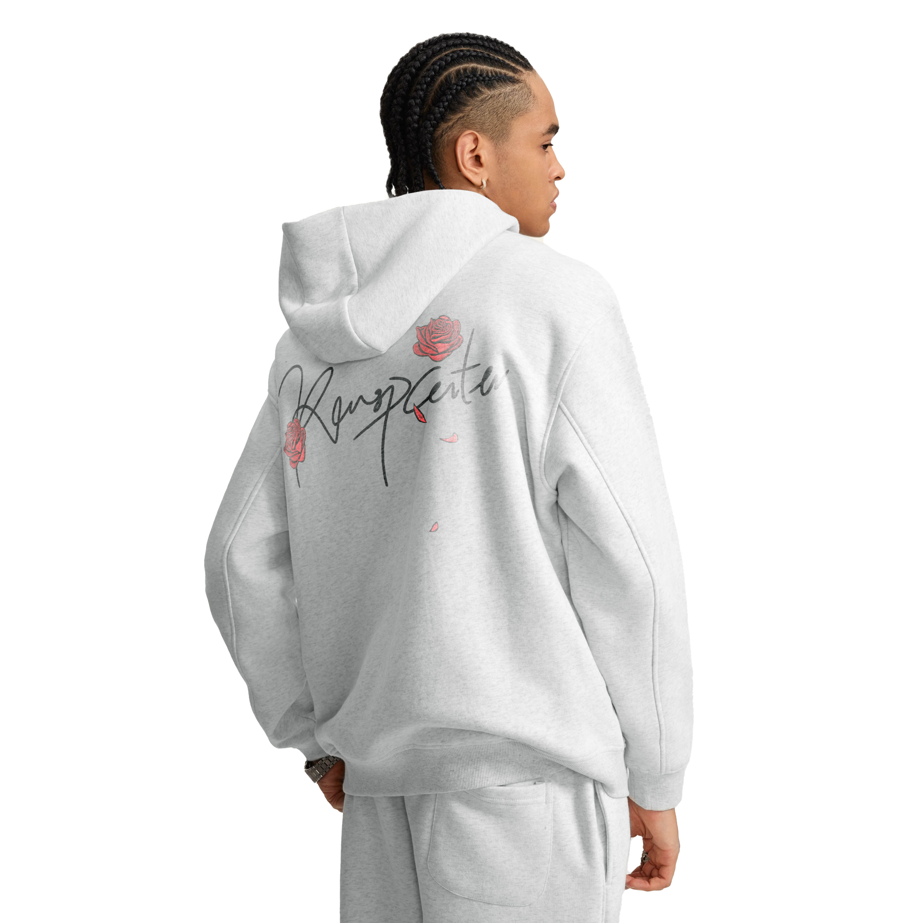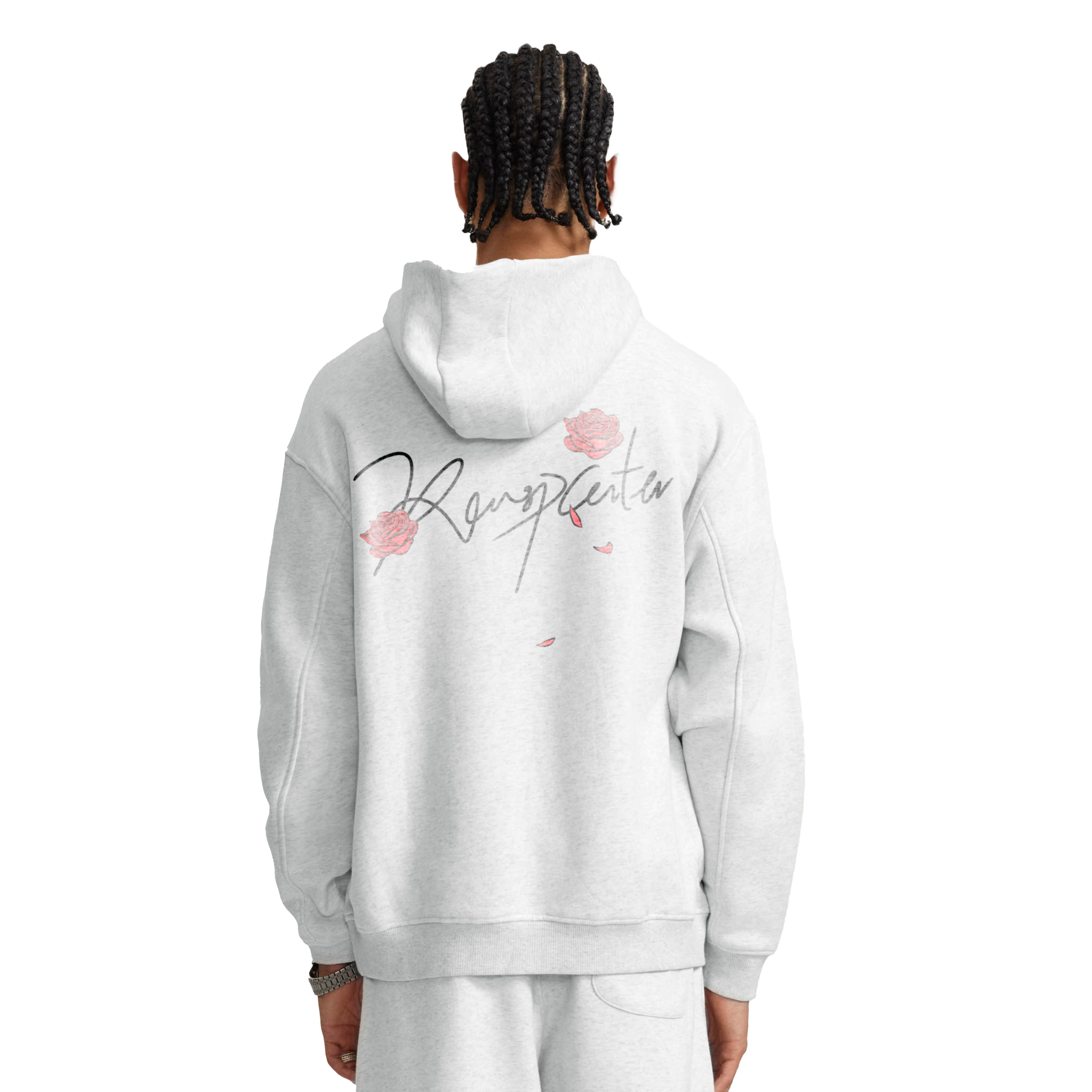 RASP印花玫瑰帽衫 美式复古秋季宽松休闲重磅连帽情侣款卫衣男