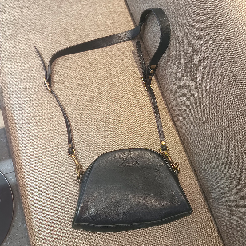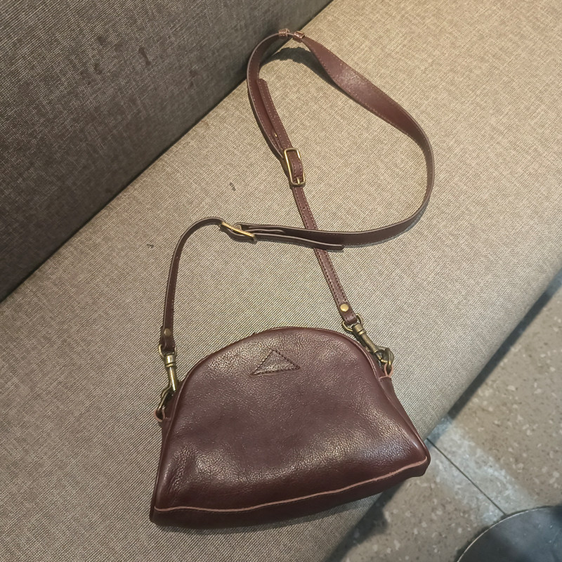 轻复古简约头层植鞣牛皮女士贝壳小方包原创女士单肩包手机斜挎包