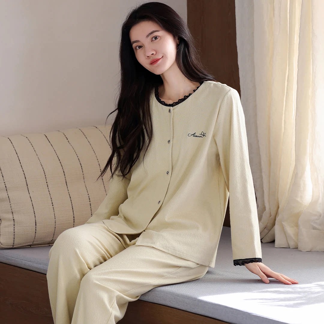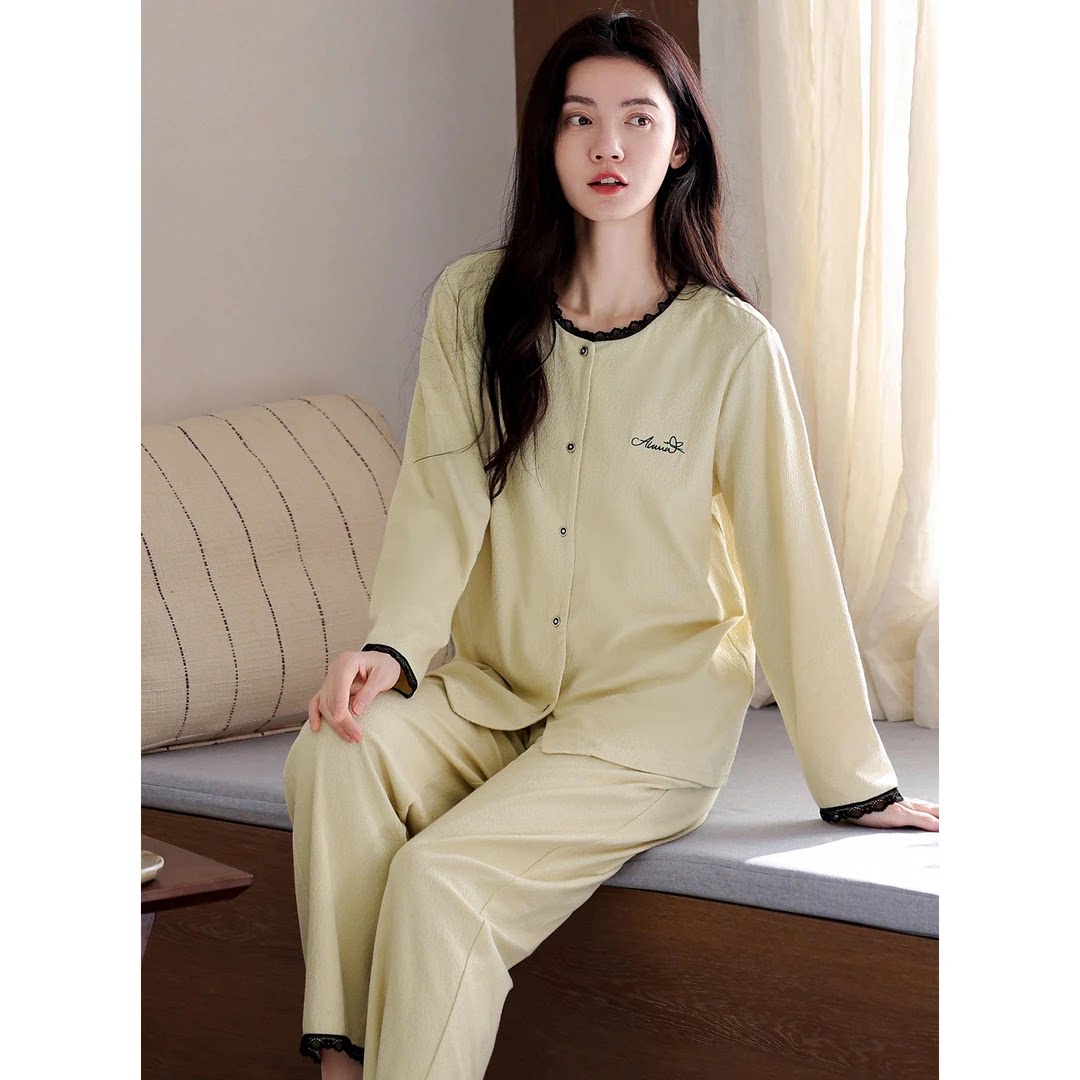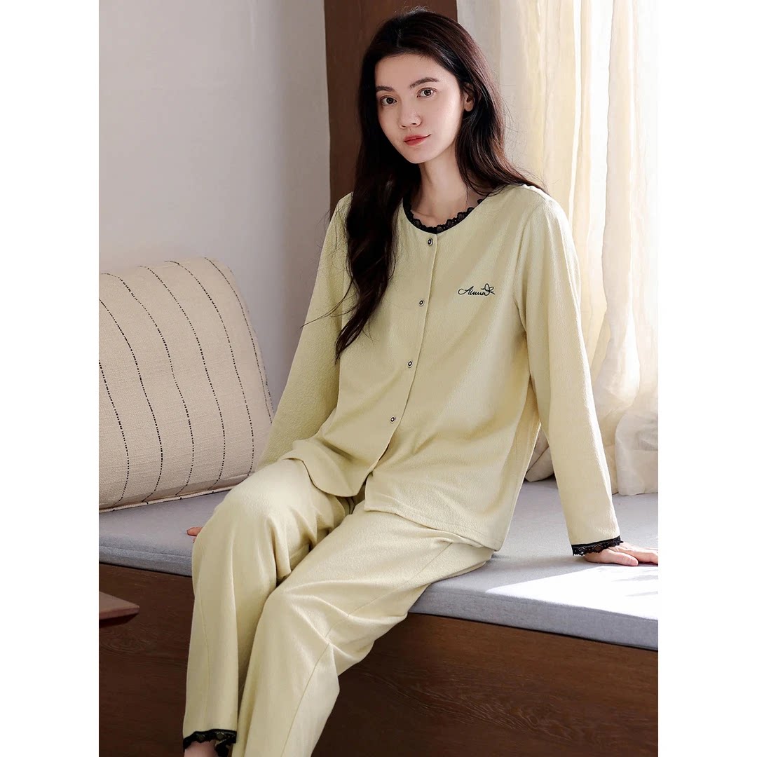 浪莎睡衣女春秋款纯棉长袖2025年新款秋冬大码薄款宽松开衫家居服