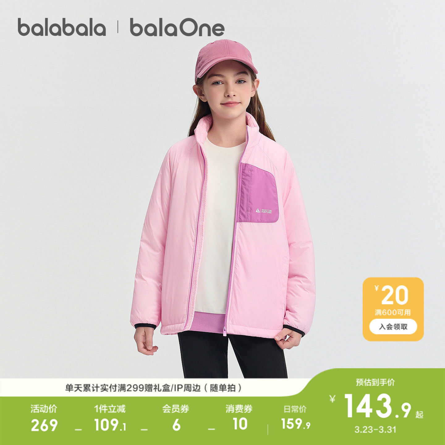巴拉巴拉童装儿童外套男童棉服女童上衣新款衣服秋冬装加厚舒适潮