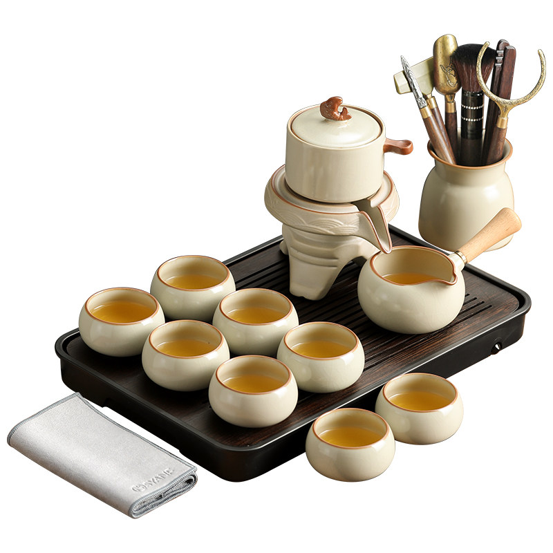 功夫茶具套装家用汝窑高档陶瓷懒人自动泡茶器茶杯套装2024新款