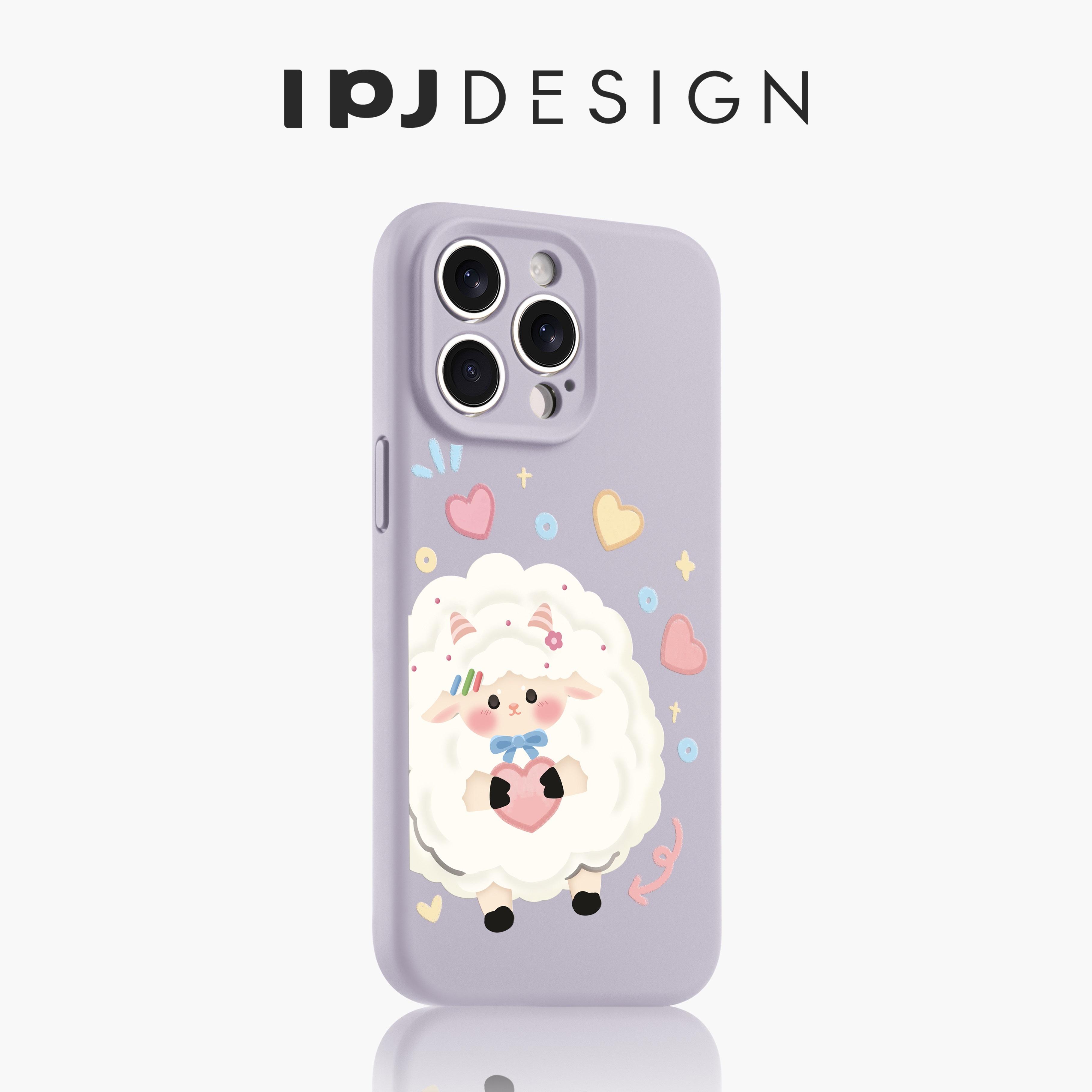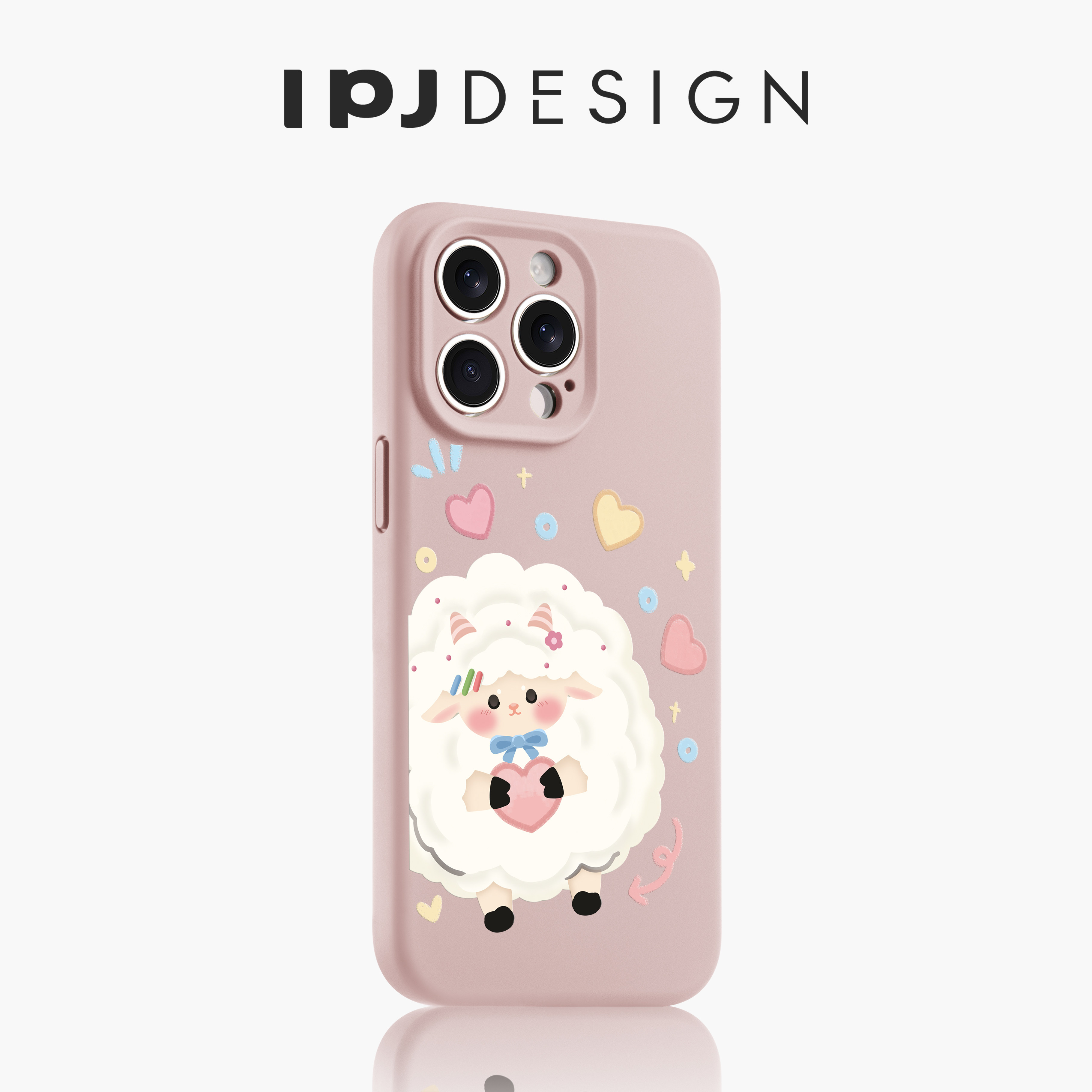 IPJ爱心简约棉花糖小羊液态手机壳17适用于iphone16promax苹果15PRO手机壳13卡通14套12硅胶防摔