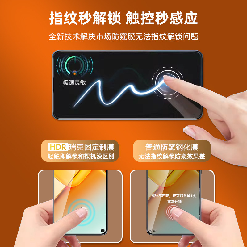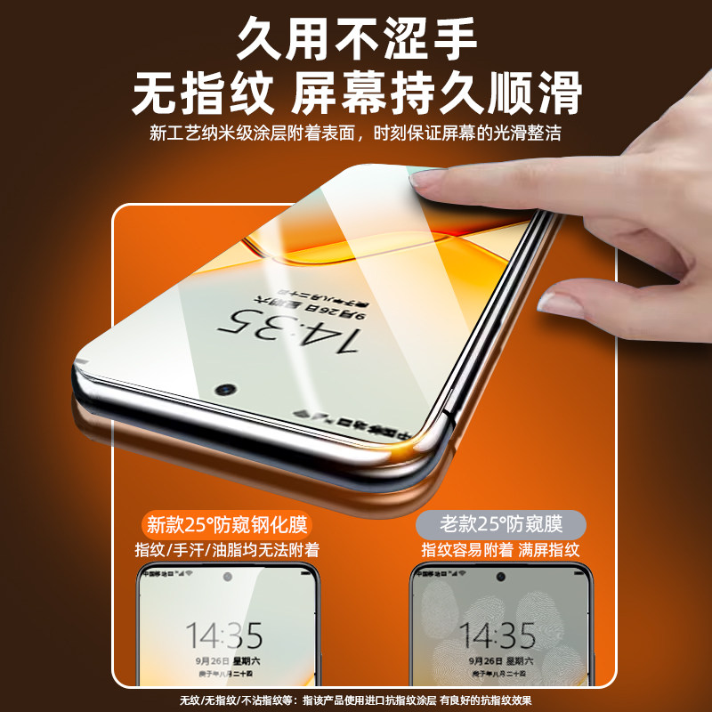 升级指纹秒解版 新25°真防窥膜 高透光无色