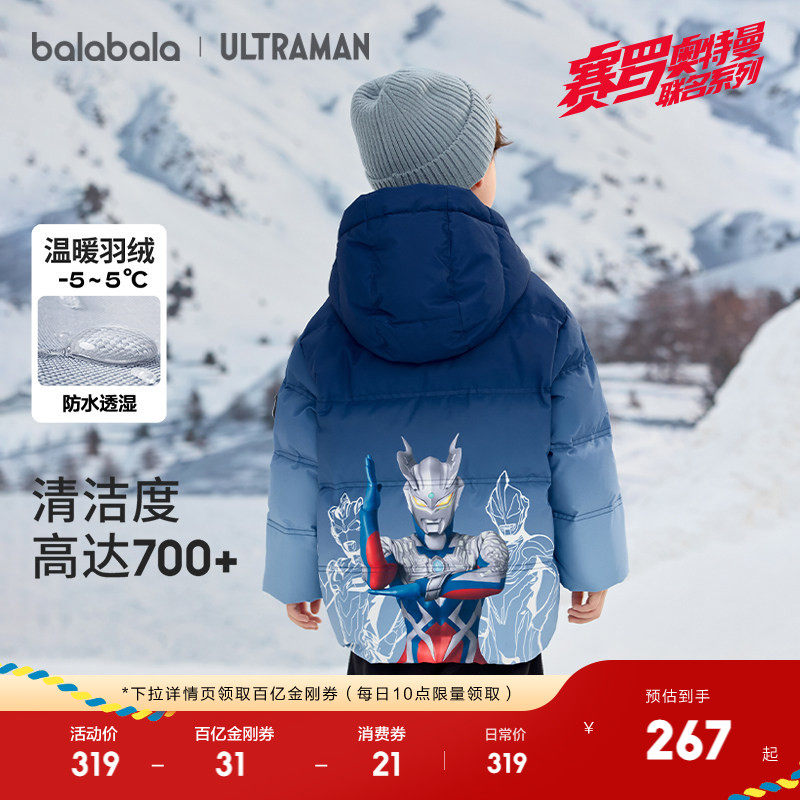 【奥特曼IP】巴拉巴拉男童羽绒服冬装连帽外套防风防水透湿保暖潮