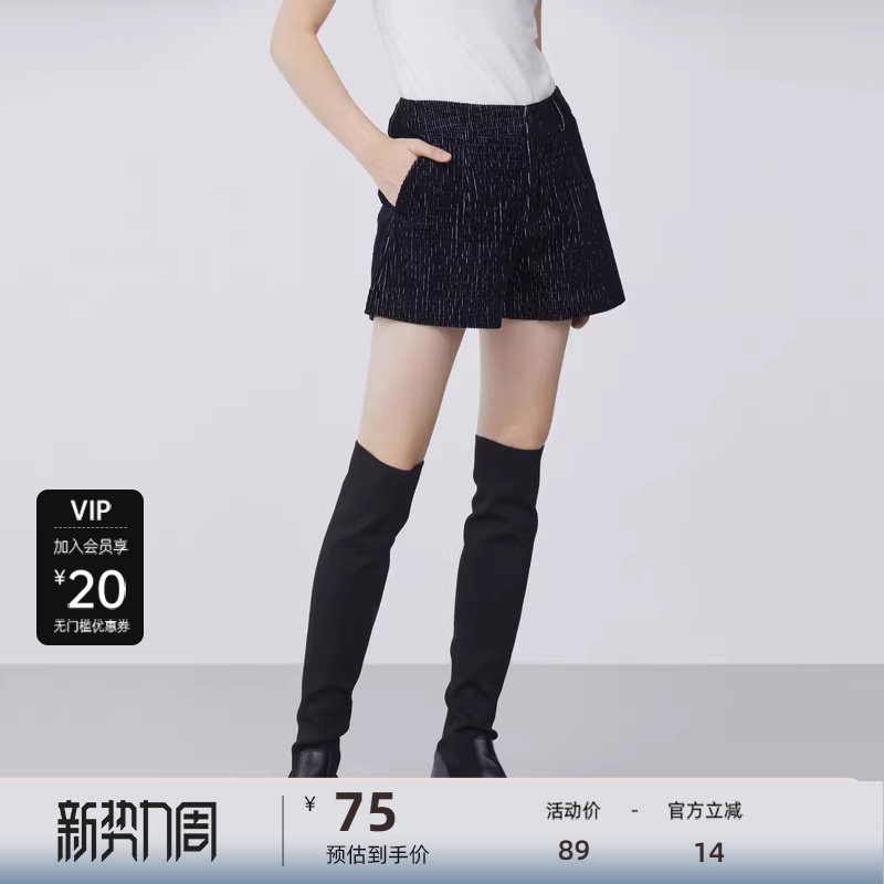 sdeer圣迪奥女装秋秋季时尚插袋撞色条纹灯芯绒A字短裤S21360901
