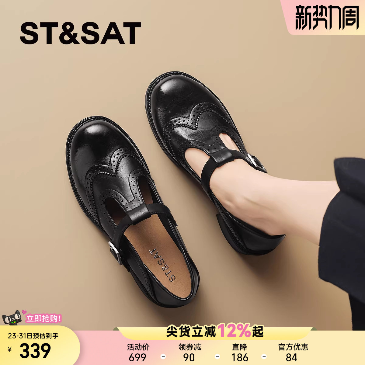 星期六英伦风真皮玛丽珍鞋单鞋女鞋2026春季新款通勤粗跟小皮鞋子