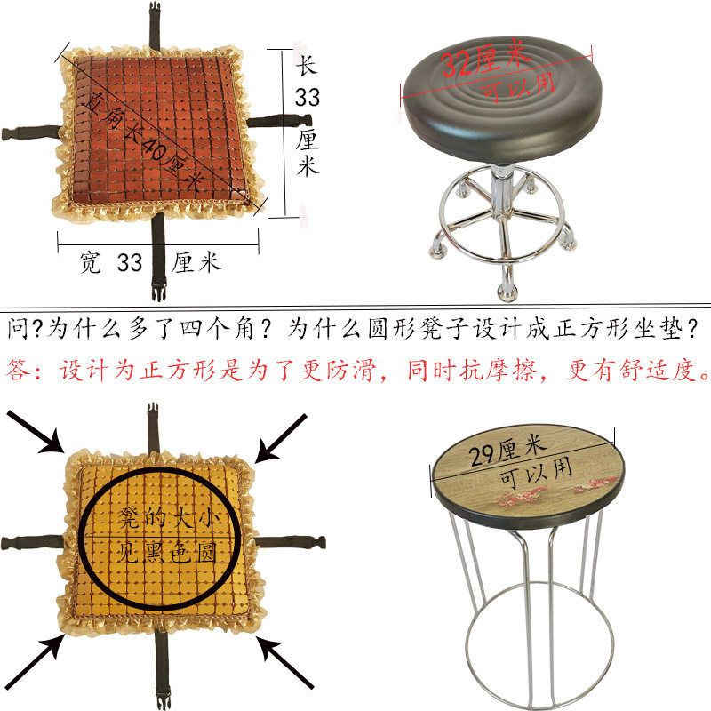 圆形坐垫加厚夏季凉垫竹垫子圆凳子透气四季含海绵麻将屁股垫散热