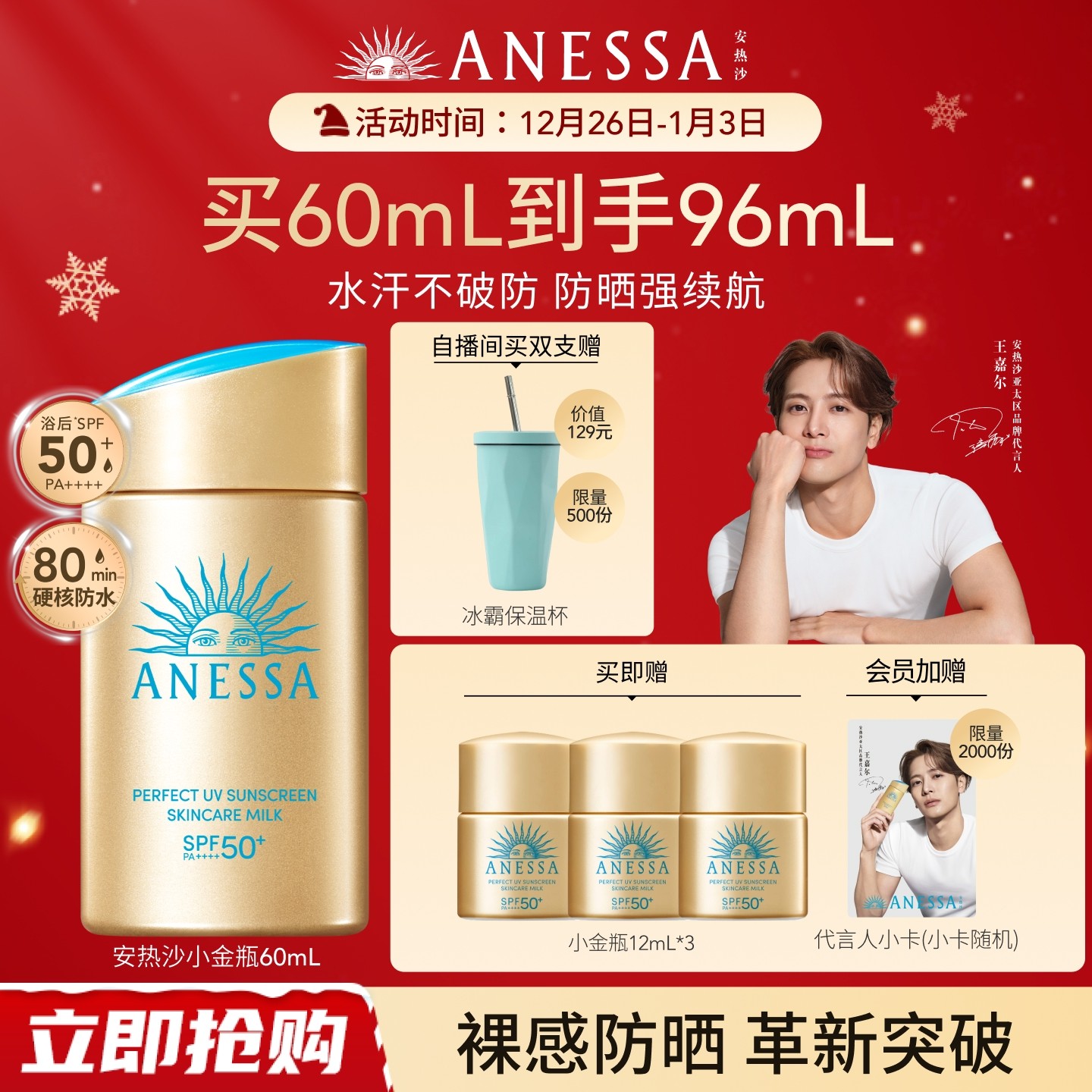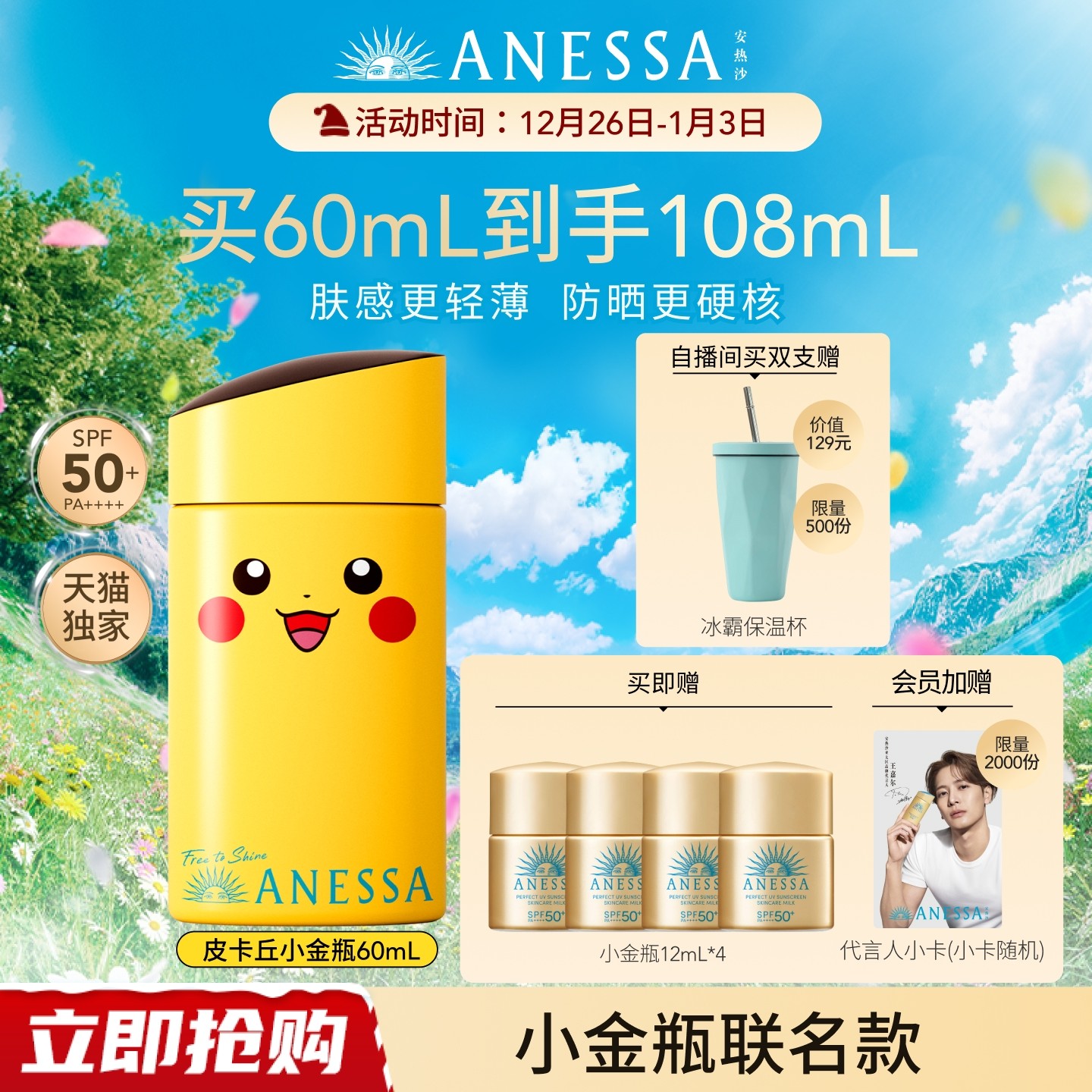 【出游推荐】安热沙小金瓶防晒霜乳耐晒清爽隔离轻薄肤感户外