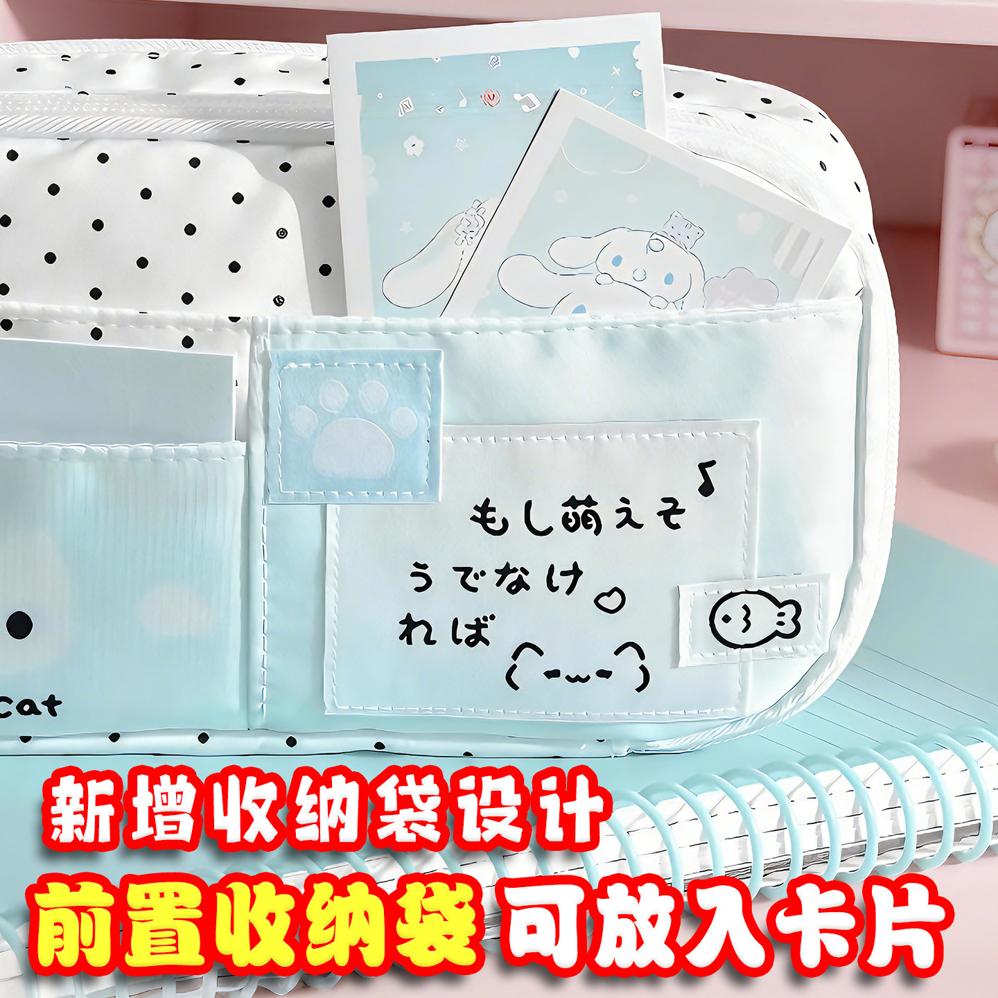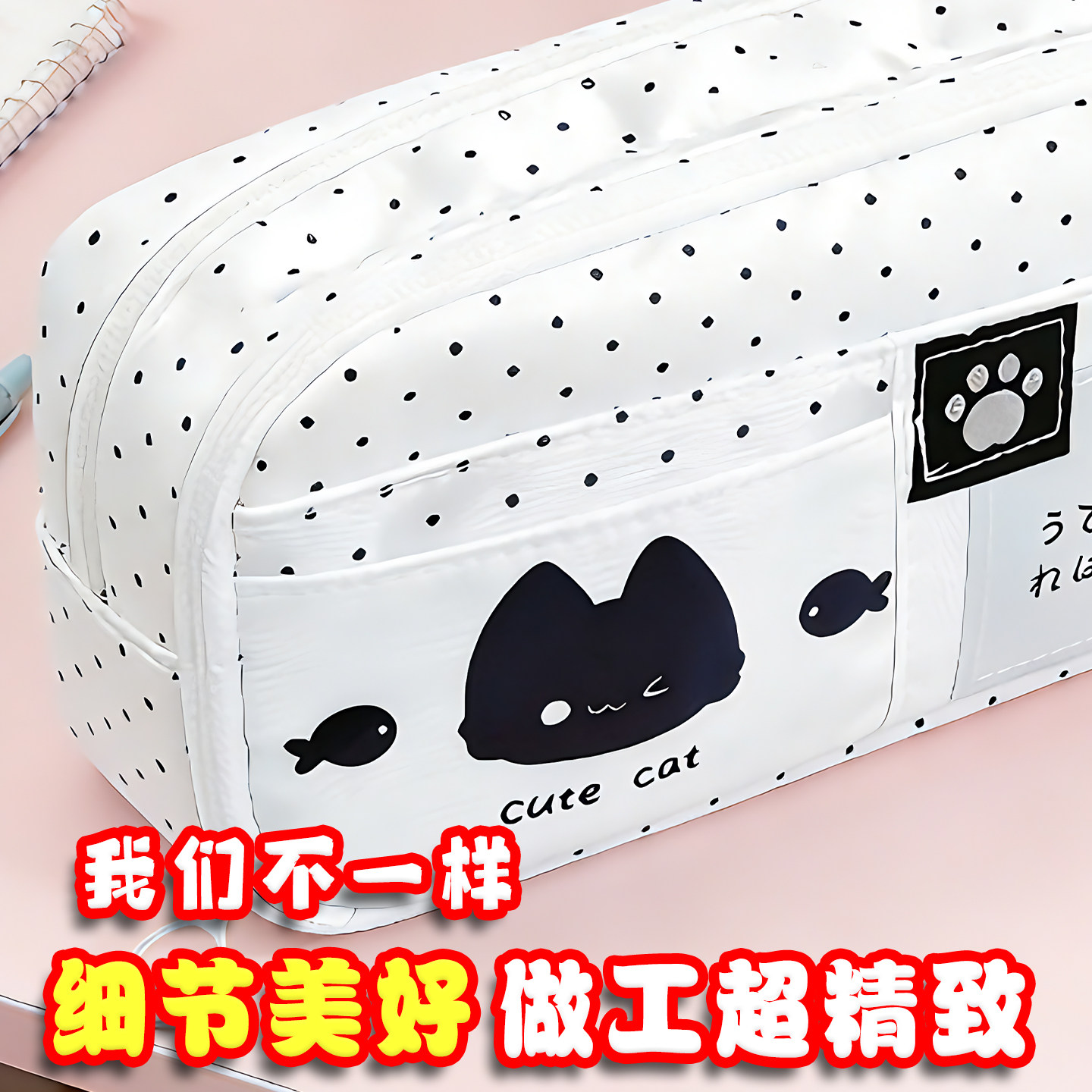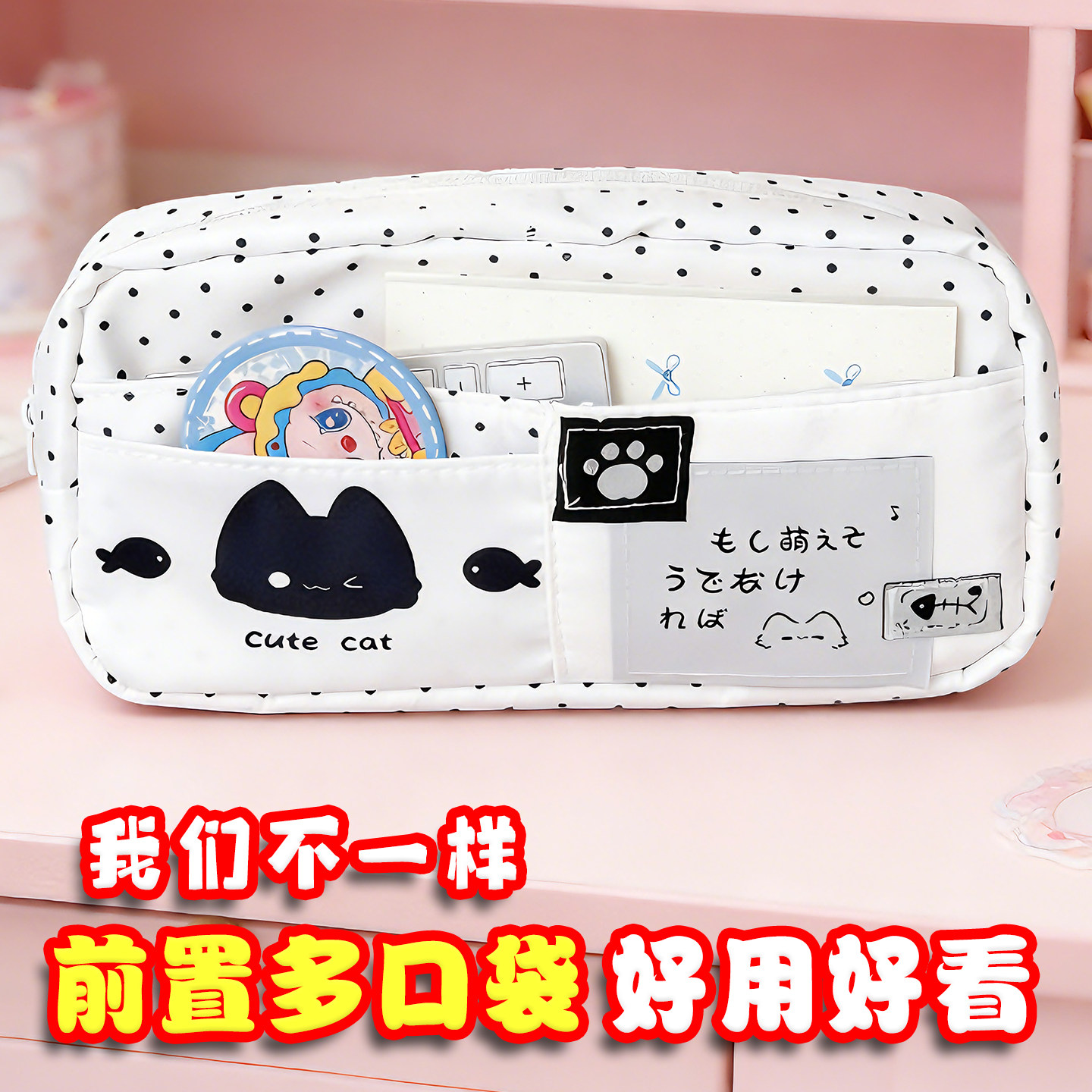 2026年超火笔袋日系波点小猫笔袋初中女生高颜值ins风大容量铅笔盒2026新款学生小众不撞款日韩风简约收纳盒