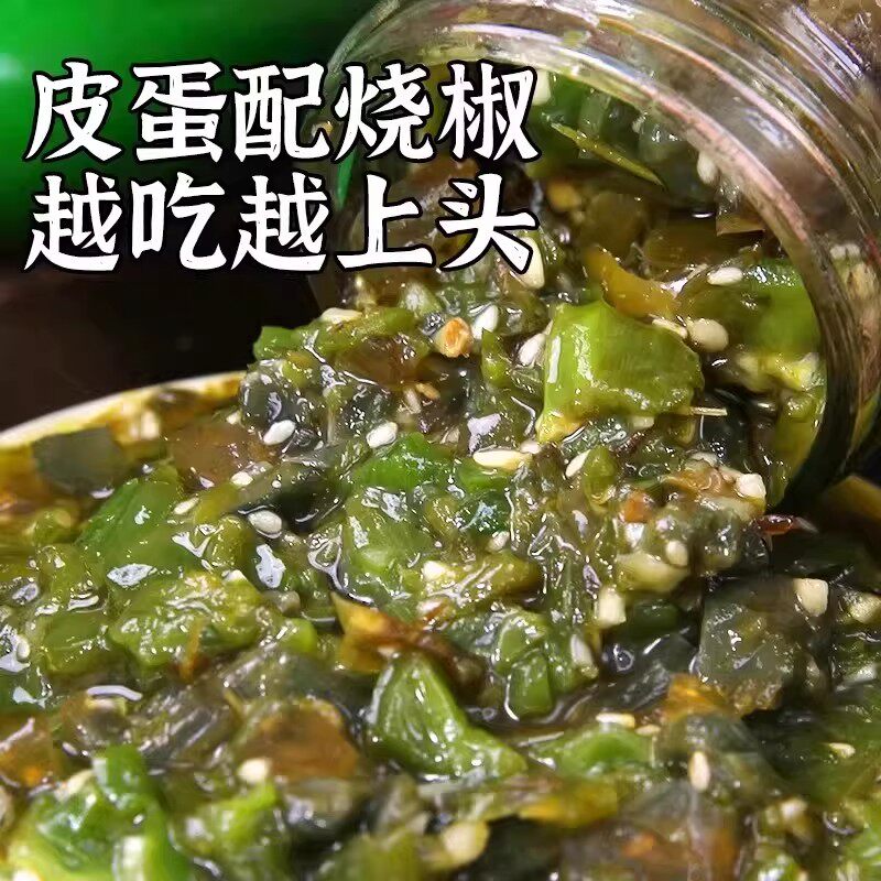 农科院推荐正宗新鲜皮蛋烧椒酱川味擂辣椒酱夹馍下饭菜青椒酱瓶装