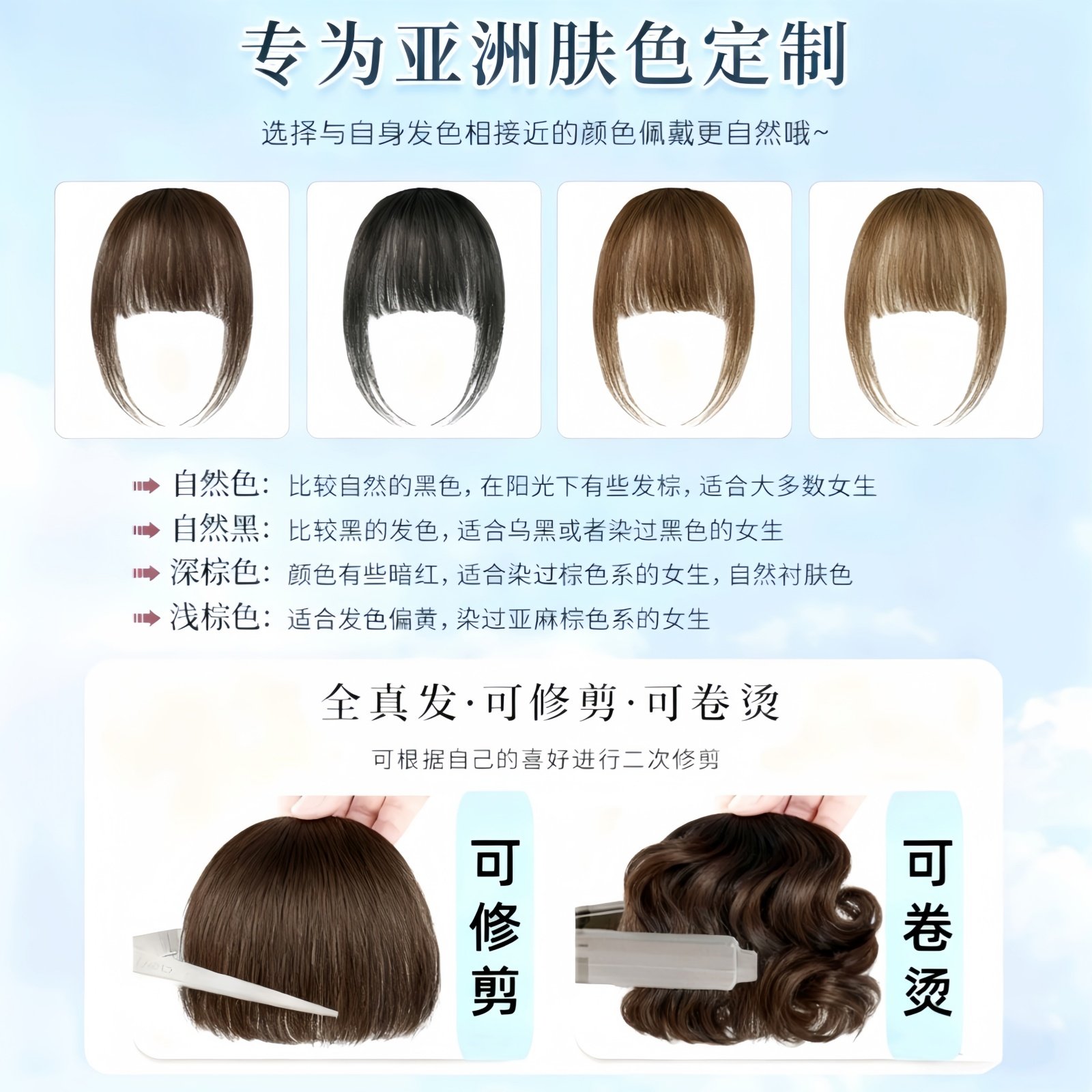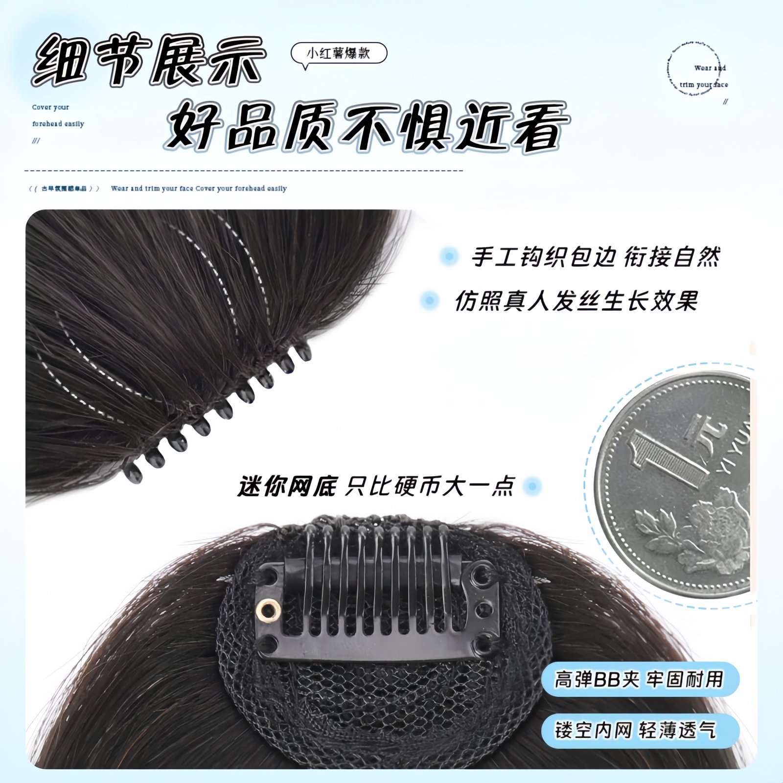 漫画刘海假发女自然前额全真发轻薄无痕假发片头顶蓬松空气假刘海