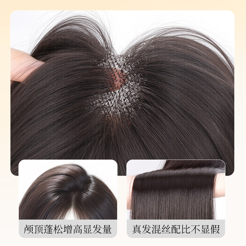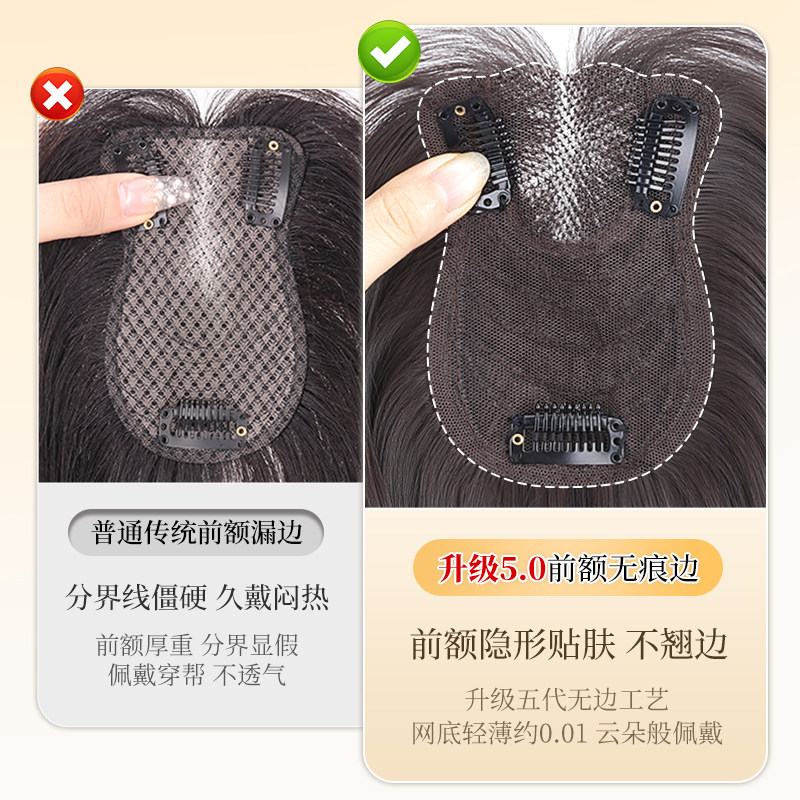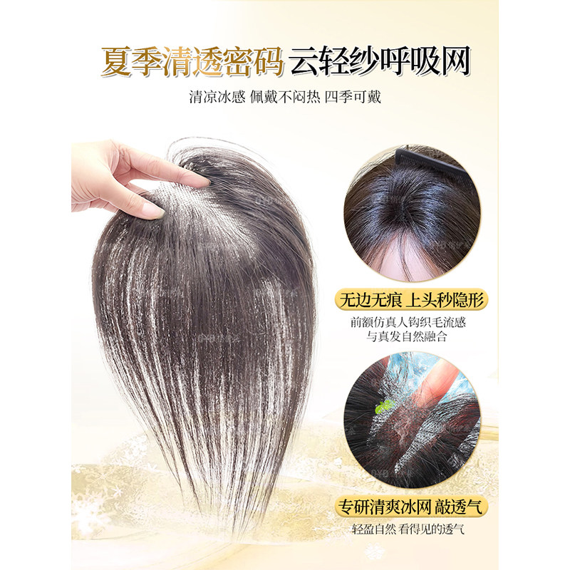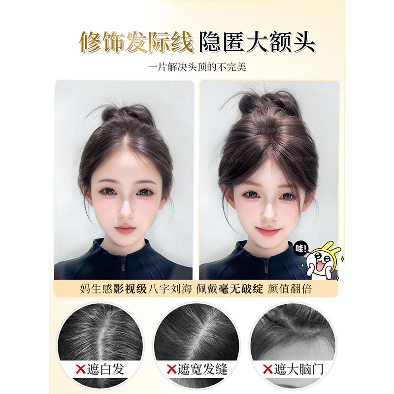假发片女头顶胎毛八字刘海补发全真发遮白发高颅顶无痕补发片蓬松