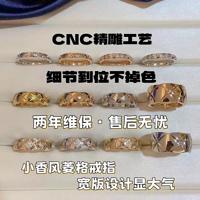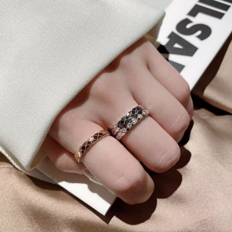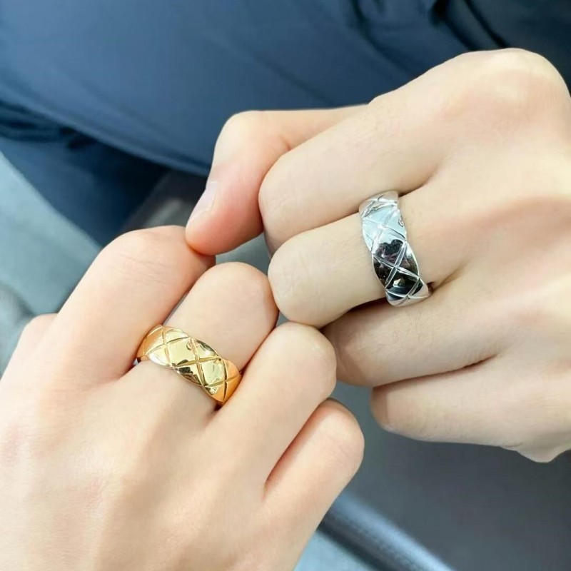 菱格纹coco戒指女时尚百搭叠戴情侣对戒宽版窄指环小香风素感食指