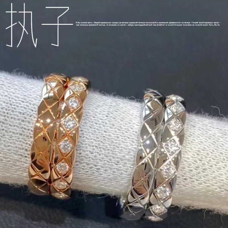 coco菱格戒指女小香风指环叠戴轻奢排钻玫瑰金送女友情侣对戒