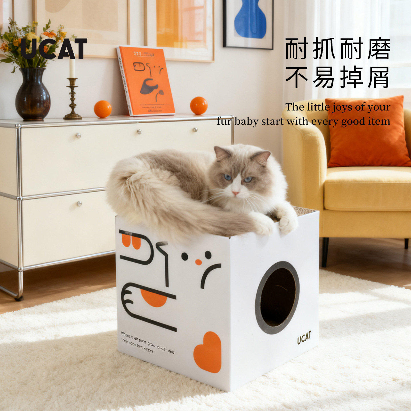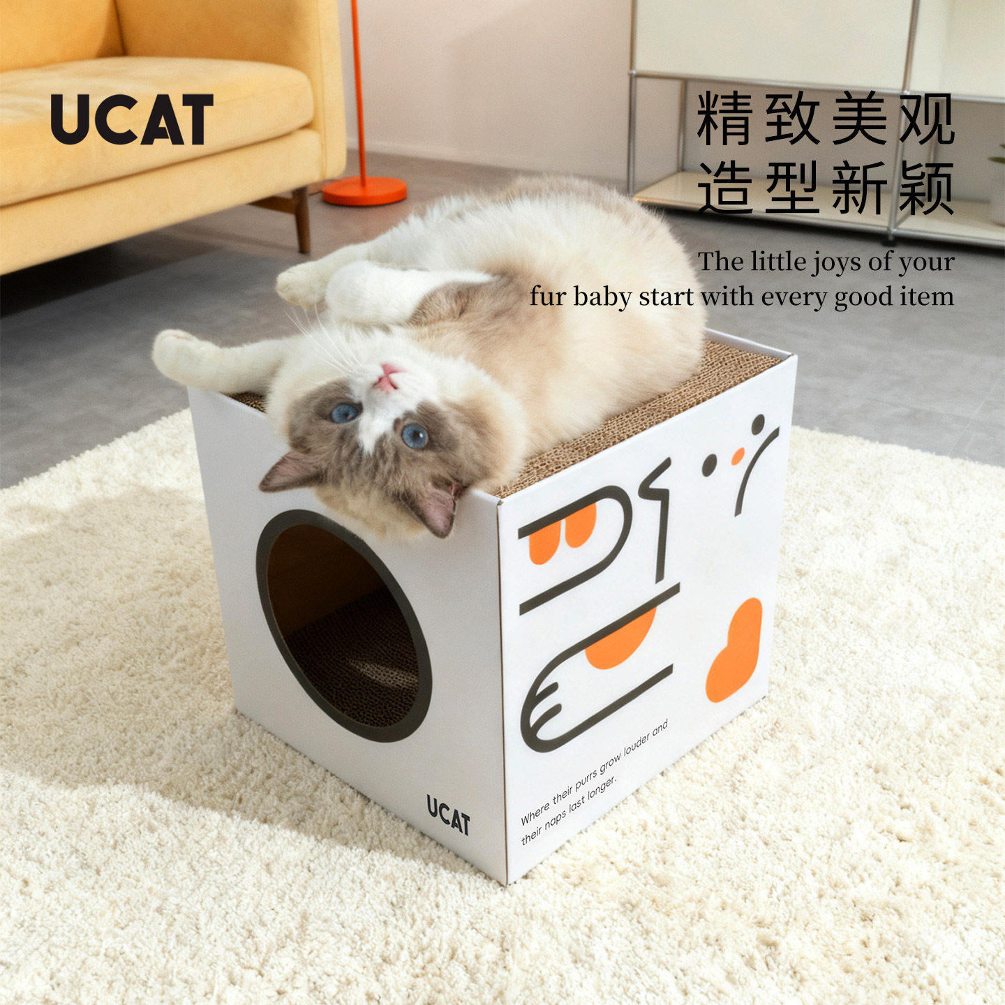 ucat多巴胺猫窝双层方盒猫板玩睡一体瓦楞纸耐磨保护沙发窝 |誊炼