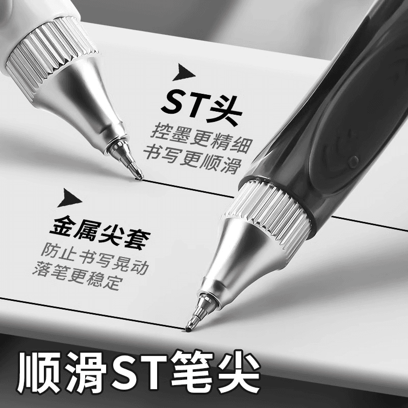 ST刷题笔高颜值按动中性笔圆珠笔黑色水笔小学生专用考试0.5速干碳素笔水性黑笔按压式做笔记签字笔非按斤卖