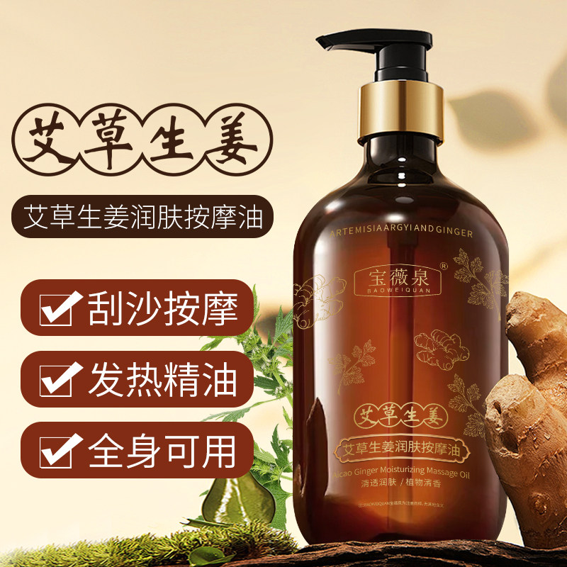 宝薇泉生姜艾草发热按摩精油全身身体通经络开背推背刮痧官方正品