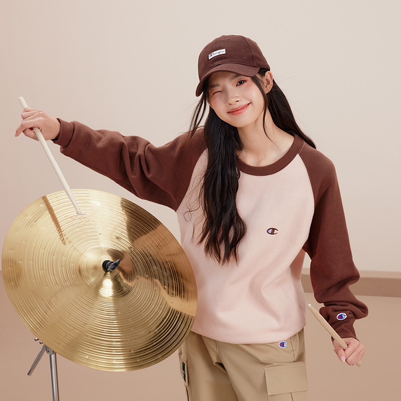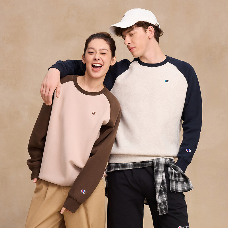 Champion冠军情侣卫衣男2025冬季新款插肩袖上衣女保暖加绒学院秋