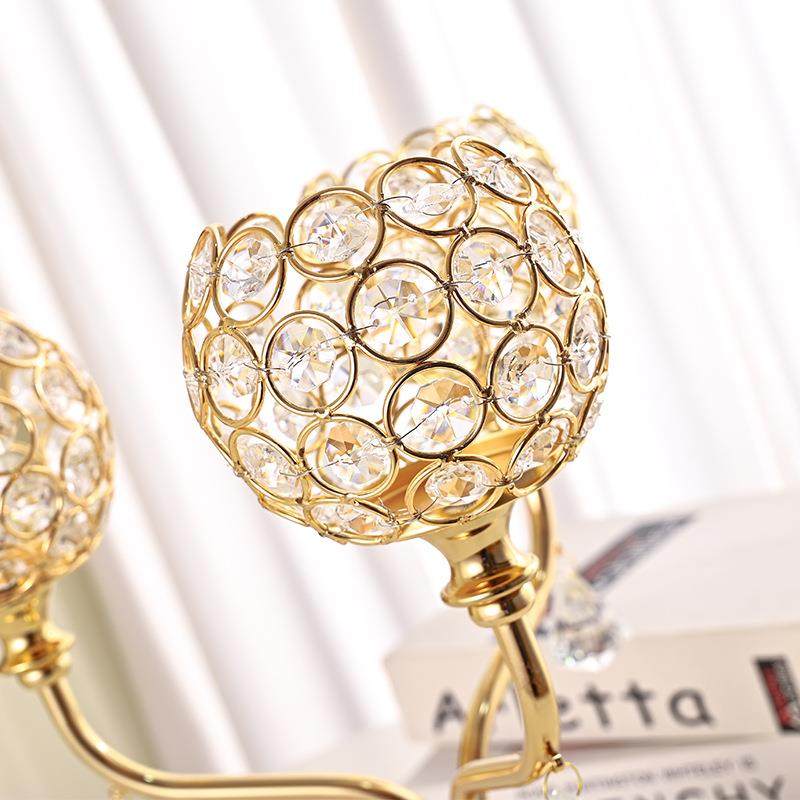 水晶烛台铁艺蜡烛台客厅餐桌浪漫烛光晚餐装饰烛台金色摆件烛台