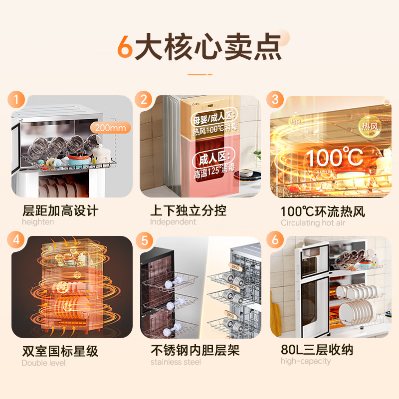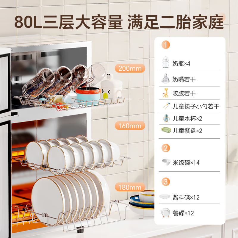 康宝消毒柜立式不锈钢家用母婴消毒碗柜大容量热风二星级消毒LC3M