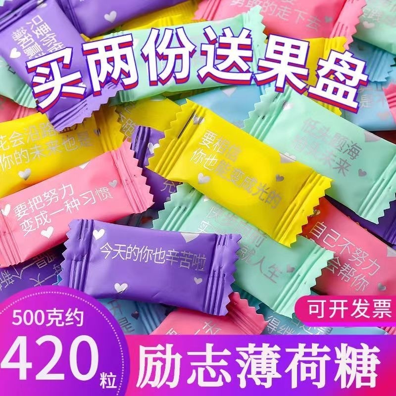 励志语录糖果无糖薄荷糖奖励学生零食清新口气餐饮招待圈圈糖散装