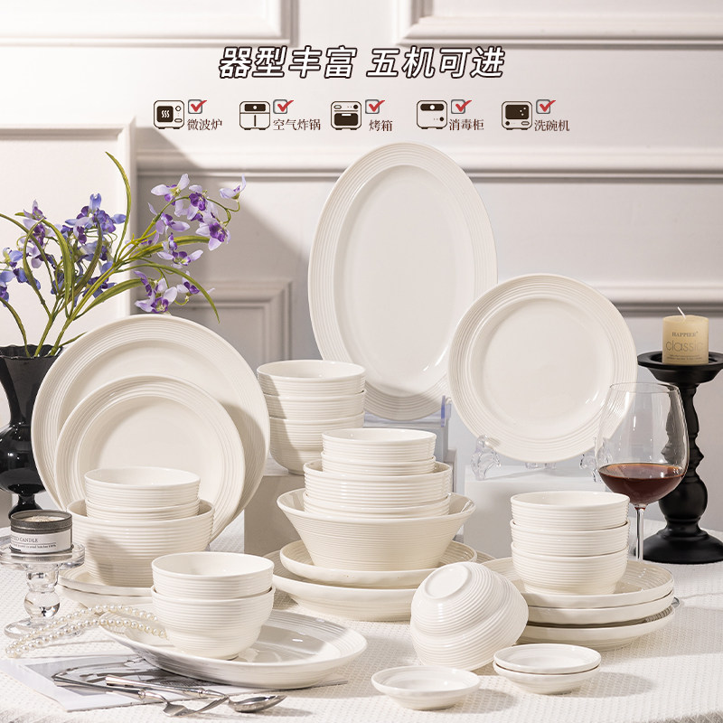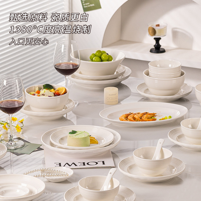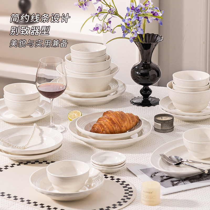 纯白陶瓷餐具套装简约高级感碗碟套装家用2025新款釉下彩碗盘碗具