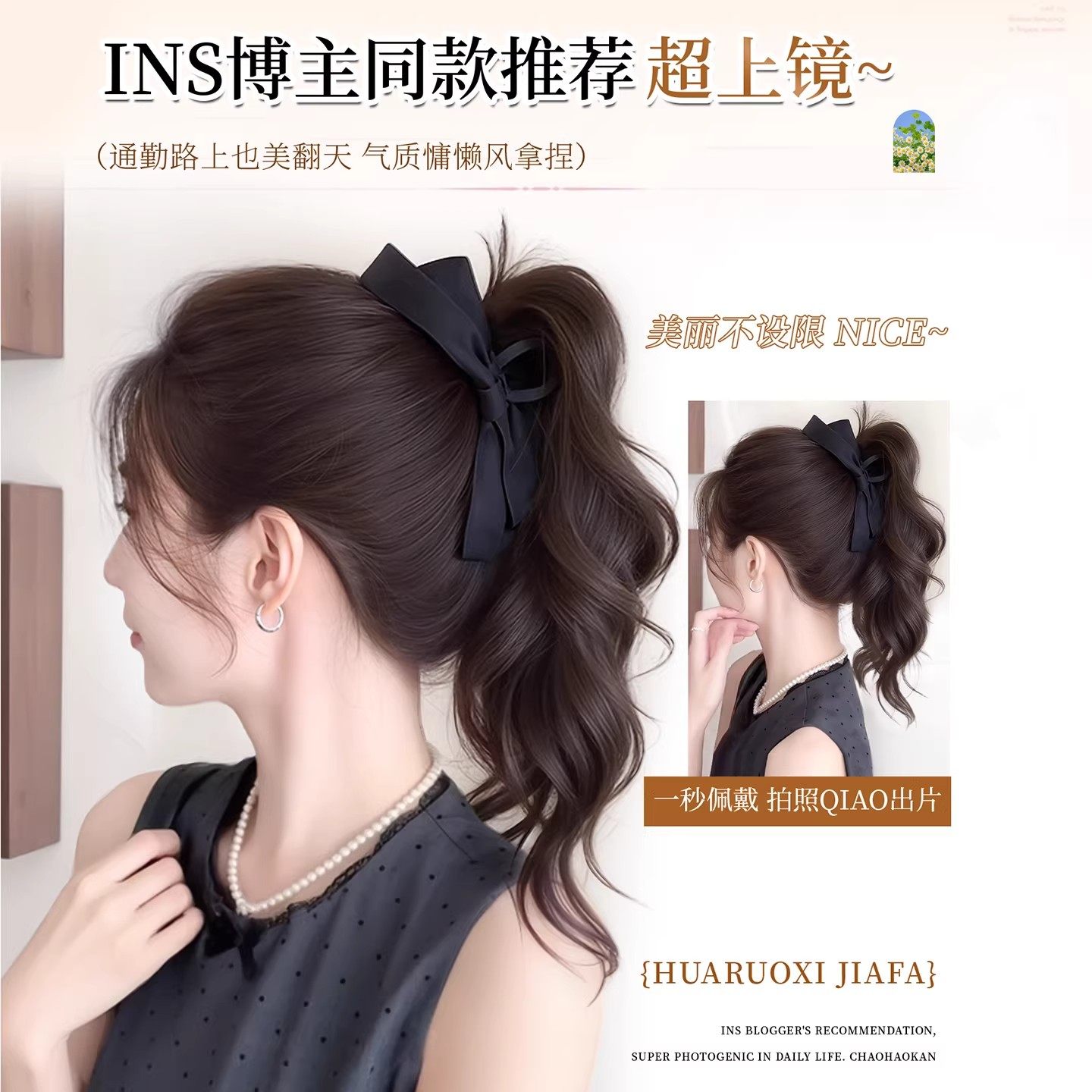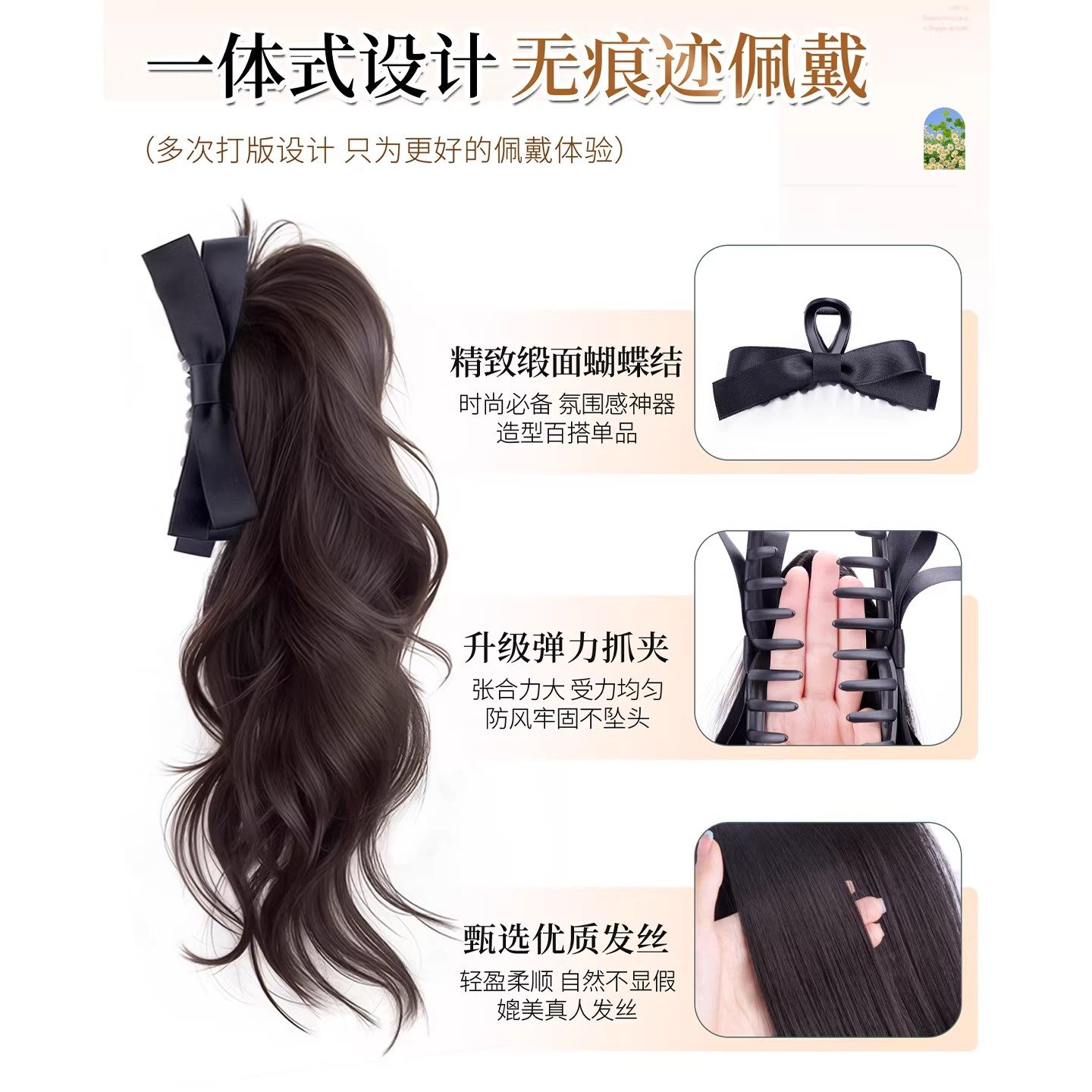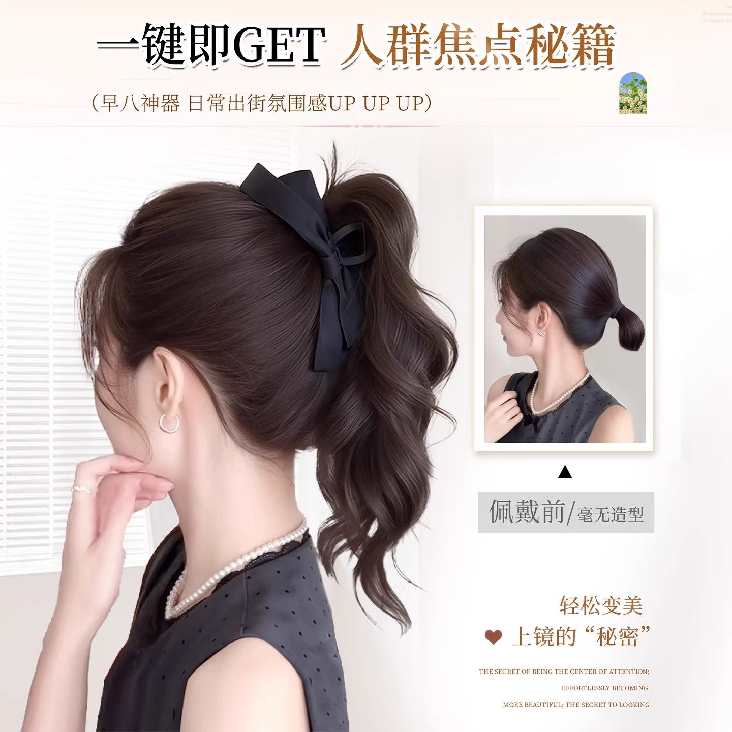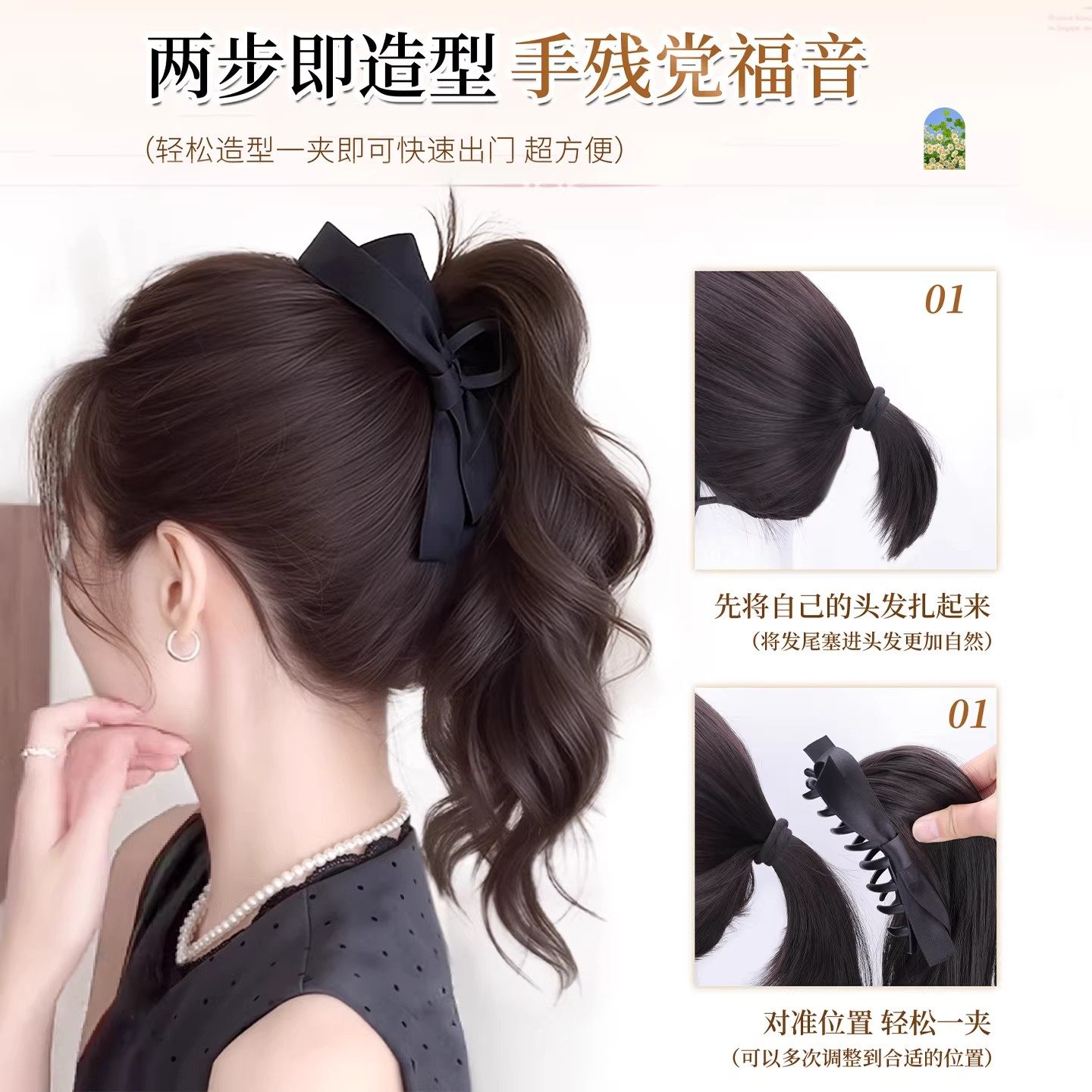 假发辫马尾女仿真发蝴蝶结抓夹卷马尾自然量同款假发高温丝神器